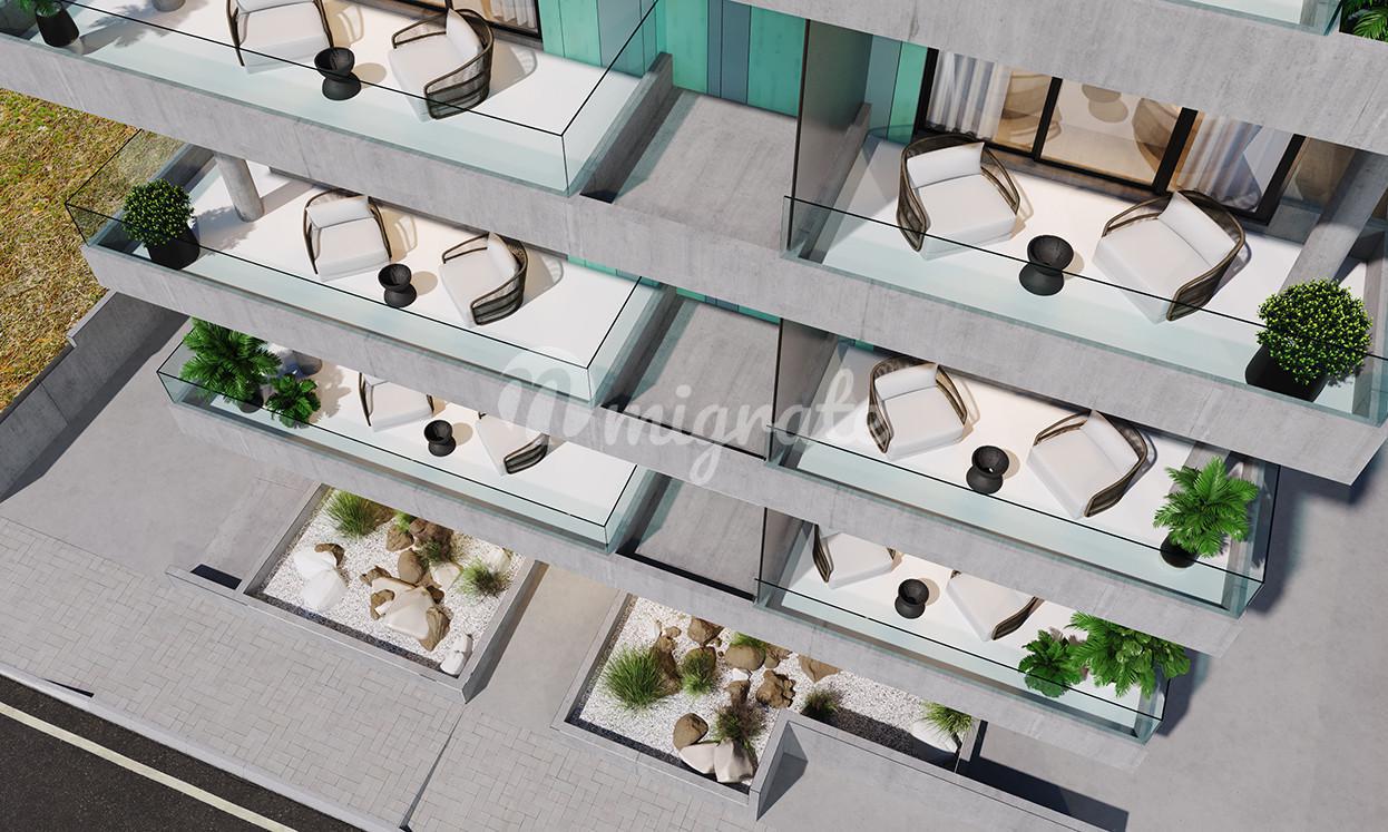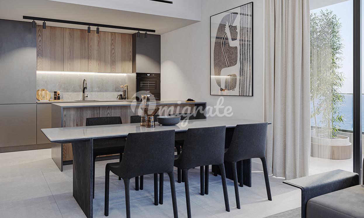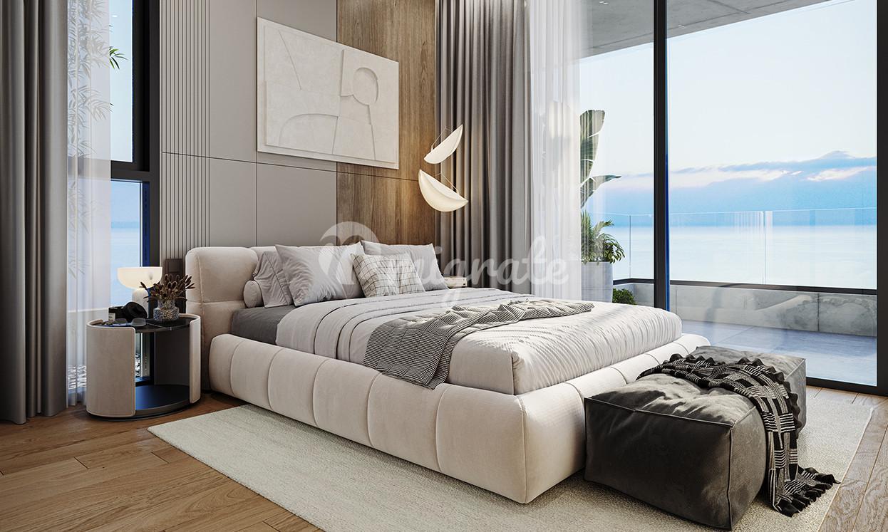 Окна во всю стену пропускают много солнечного света и открывают вид на море, а архитектурный дизайн обеспечивает уединение. Интерьер апартаментов тщательно продуман, чтобы каждый квадратный метр был использован с пользой для владельца. Роскошные апартаменты отделаны роскошными материалами, такими как мрамор и гранит.