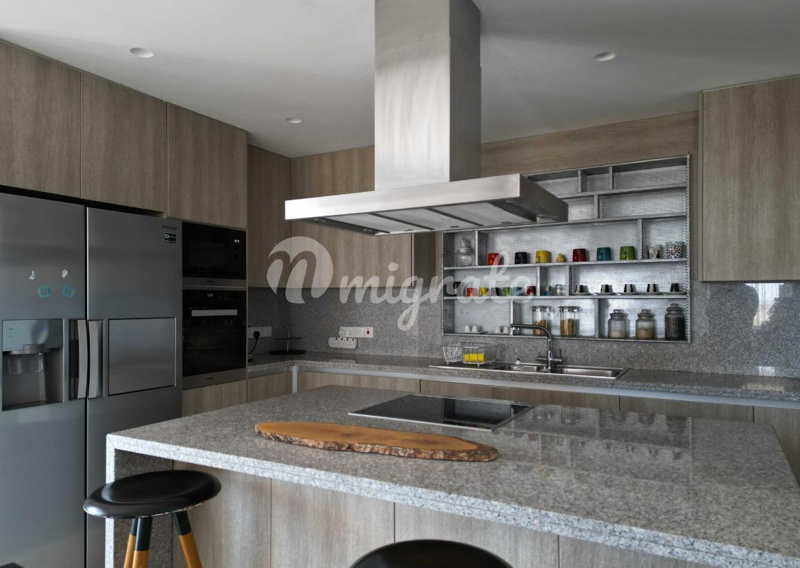 Кухня оборудована итальянскими рабочими поверхностями и кухонным гарнитуром.