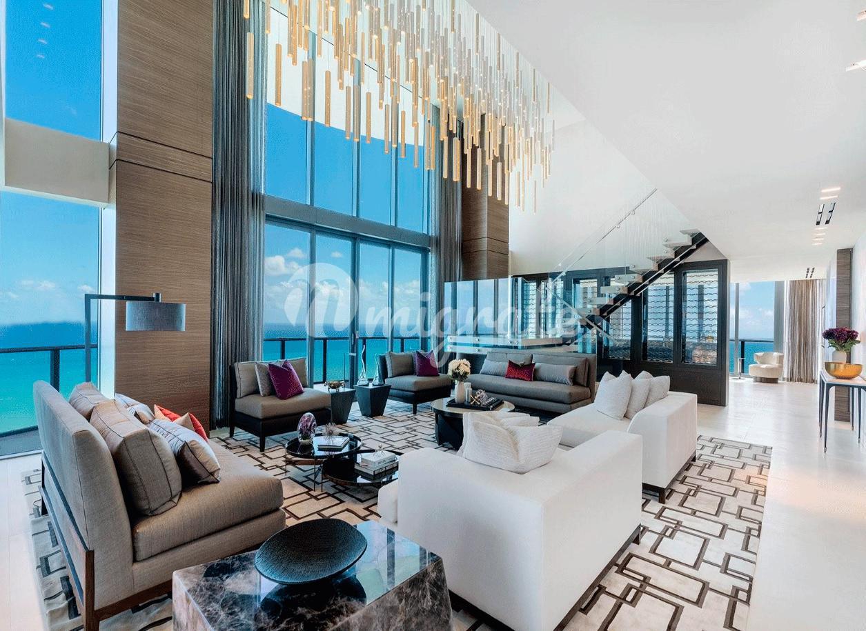 Роскошный пентхаус площадью 5122 кв. м, занимающий три этажа, расположен в элитной резиденции в Майами, предлагающей все услуги и удобства роскошной жизни на берегу океана.