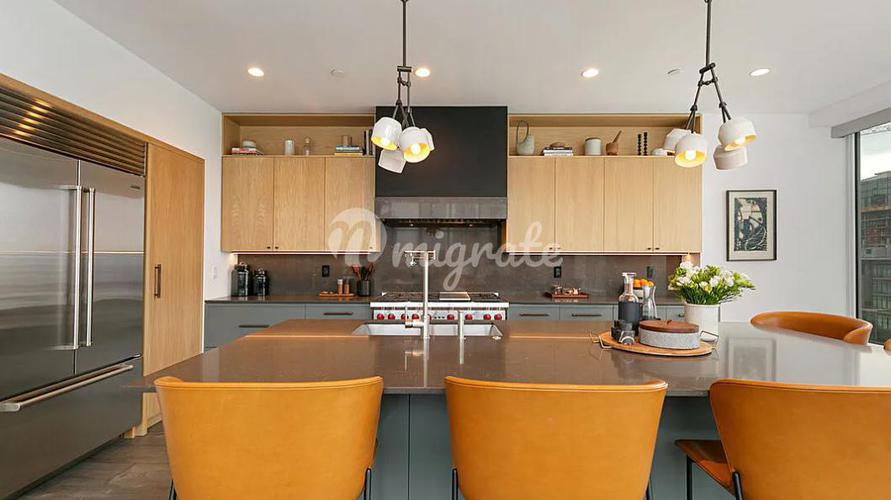 В пентхаусе расположена огромная ванная комната с примыкающим частным спа с сауной и парными. Все три этажа связывает частный лифт. Террасы, расположенные на каждом этаже, открывают чудесный панорамный вид на океан.