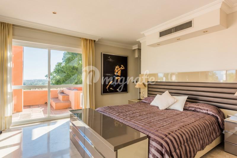 Роскошный пентхаус расположен в закрытом жилом комплексе в Золотой миле, в непосредственной близости от пляжа и Puente Romano Hotel. Пентхаус площадью 249 кв. м включает четыре спальные комнаты, просторную лаунж-зону с камином, домашний кинотеатр, полностью оборудованную кухню, комнату для персонала и гостиную.