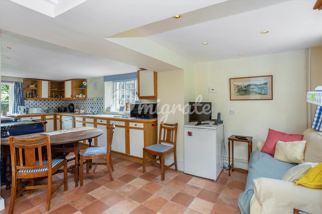 В светлых номерах есть множество старинных элементов, включая открытые балки, сиденье у окна и камин Inglenook в столовой. В квартире низкие потолки. В гостиной и гостиных есть открытый камин, а в гостиной есть французские окна, ведущие на крытую террасу. терраса.