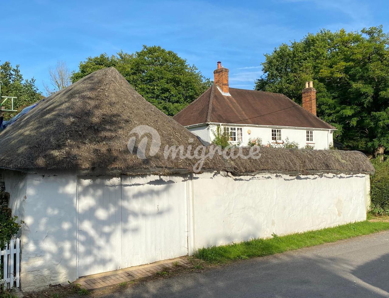 Есть гравийная парковка, доступ к которой осуществляется через деревянные ворота с переулка, что обеспечивает парковку для нескольких автомобилей и прилегающий крытый соломой гараж с садовым магазином сзади.