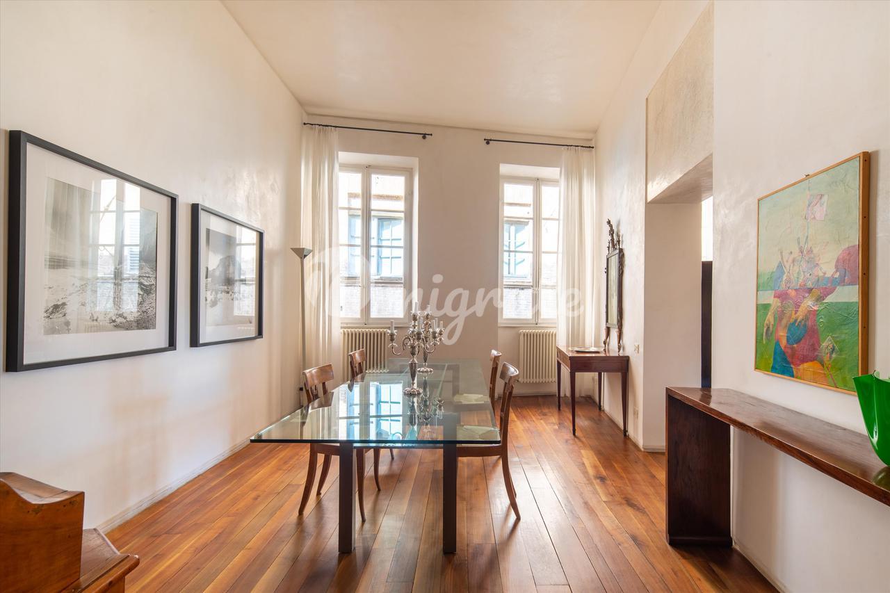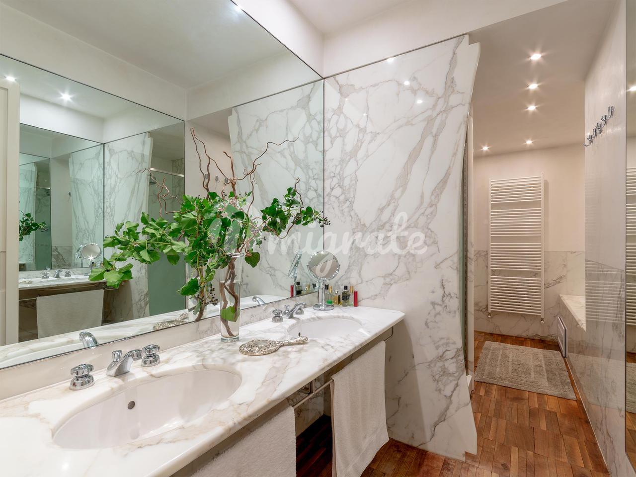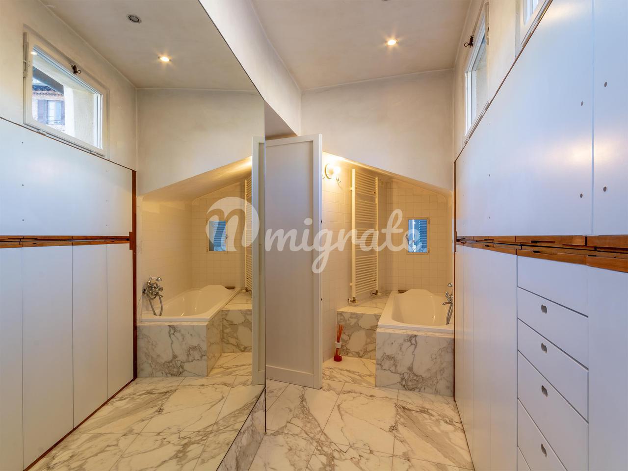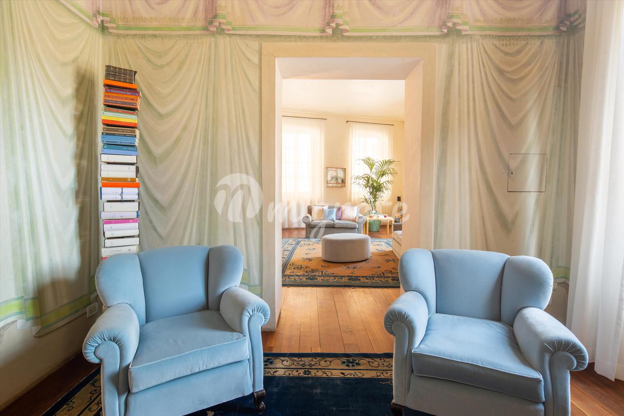Квартира на втором этаже в элегантном палаццо недалеко от площади Пьяцца дель Кампо. Просторные и светлые апартаменты расположены на двух этажах с большой панорамной террасой и балконом, с которых открывается вид на красивые крыши Сиены, площадь и окружающие холмы к югу от города. Квартира была отреставрирована нынешними владельцами с паркетными полами из орехового дерева и мраморными ванными комнатами. От входной двери большой холл с главной спальней: спальня, гардеробная и ванная комната с двойной мраморной раковиной, ванной-джакузи и душем; студия, столовая и двойная гостиная с окнами, выходящими на площадь и выходом на балкон, вторая гостиная с декорациями в стиле trompe l'oeil, спальня с двумя односпальными кроватями, спальня с видом на площадь, 2 ванные комнаты; один с душем и один с ванной и душем, далее спальня. Большая кухня-столовая с открытым камином. Гостевая ванная комната с душевой кабиной. Лестница в прачечную и большое хранилище на крыше, а также в гостиную с камином с захватывающим видом и дверью на террасу c. 24 кв.м. В продаже есть подвал.