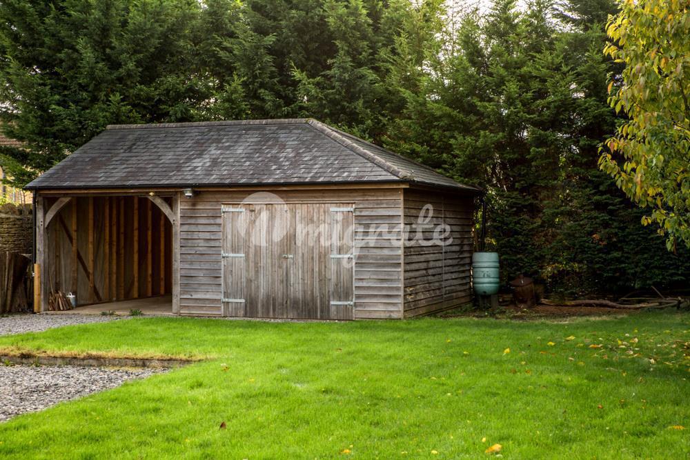 Сбоку от дома есть подъездная дорога, которая ведет через кованые железные ворота к парковке с местом для нескольких автомобилей и далее к деревянному навесу для машины и гаражу/магазину. Обнесенный стеной сад находится позади дома и имеет приватный южный вид. Мощеный внутренний дворик ведет к ровной лужайке, окаймленной несколькими взрослыми деревьями.