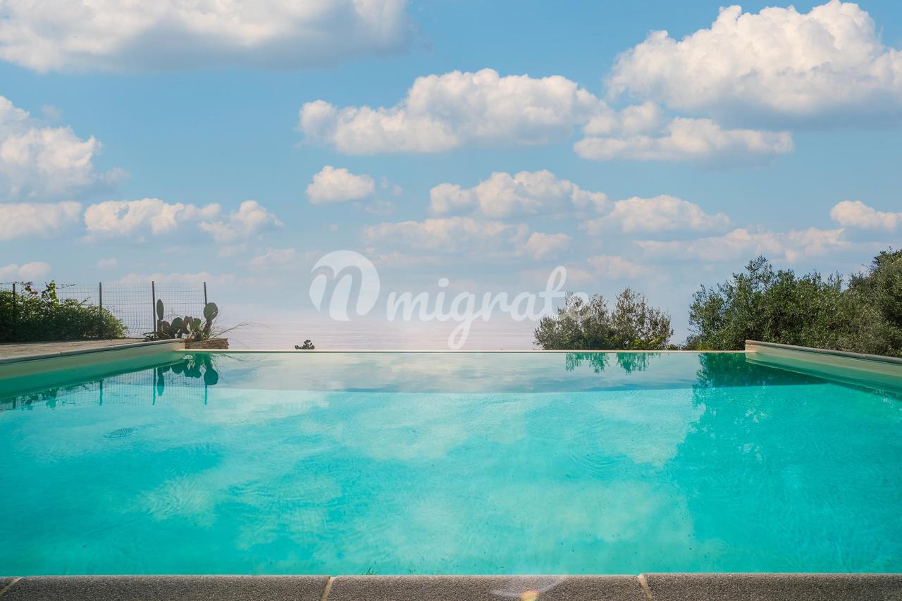 Он состоит из просторной и хорошо освещенной гостиной и обеденной зон, соединенных с современной кухней, прачечной, двух ванных комнат, двух спален и главной спальни с прямым выходом на частную террасу, общей с еще одной спальней. Собственность включает в себя поросшую травой полосу земли с видом на море, многочисленные оливковые деревья и очаровательный бассейн с очаровательным видом на море.