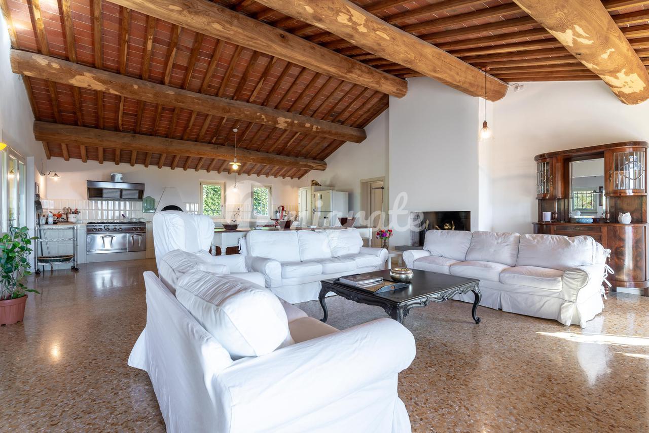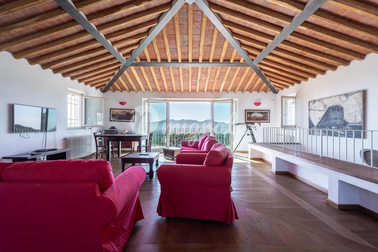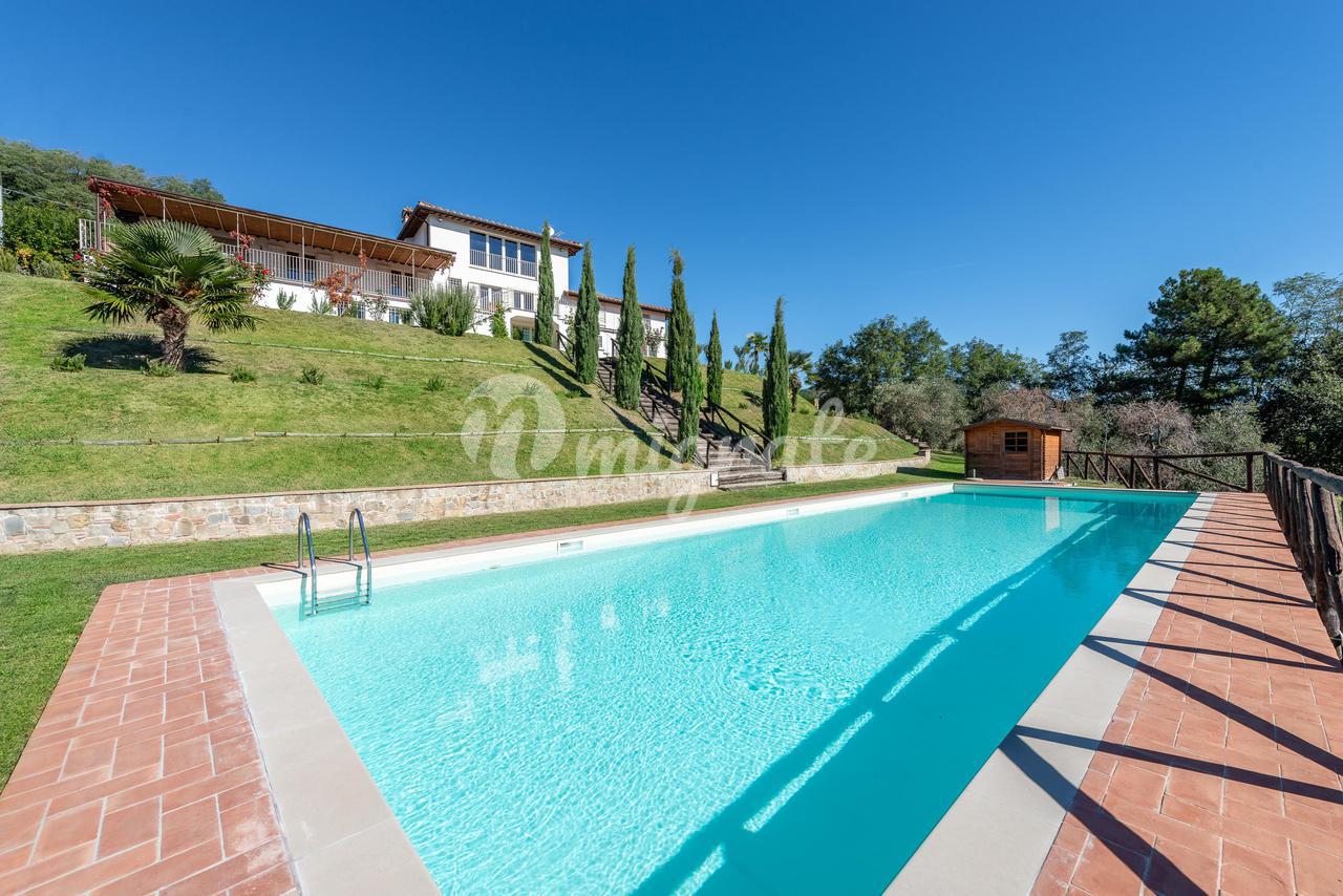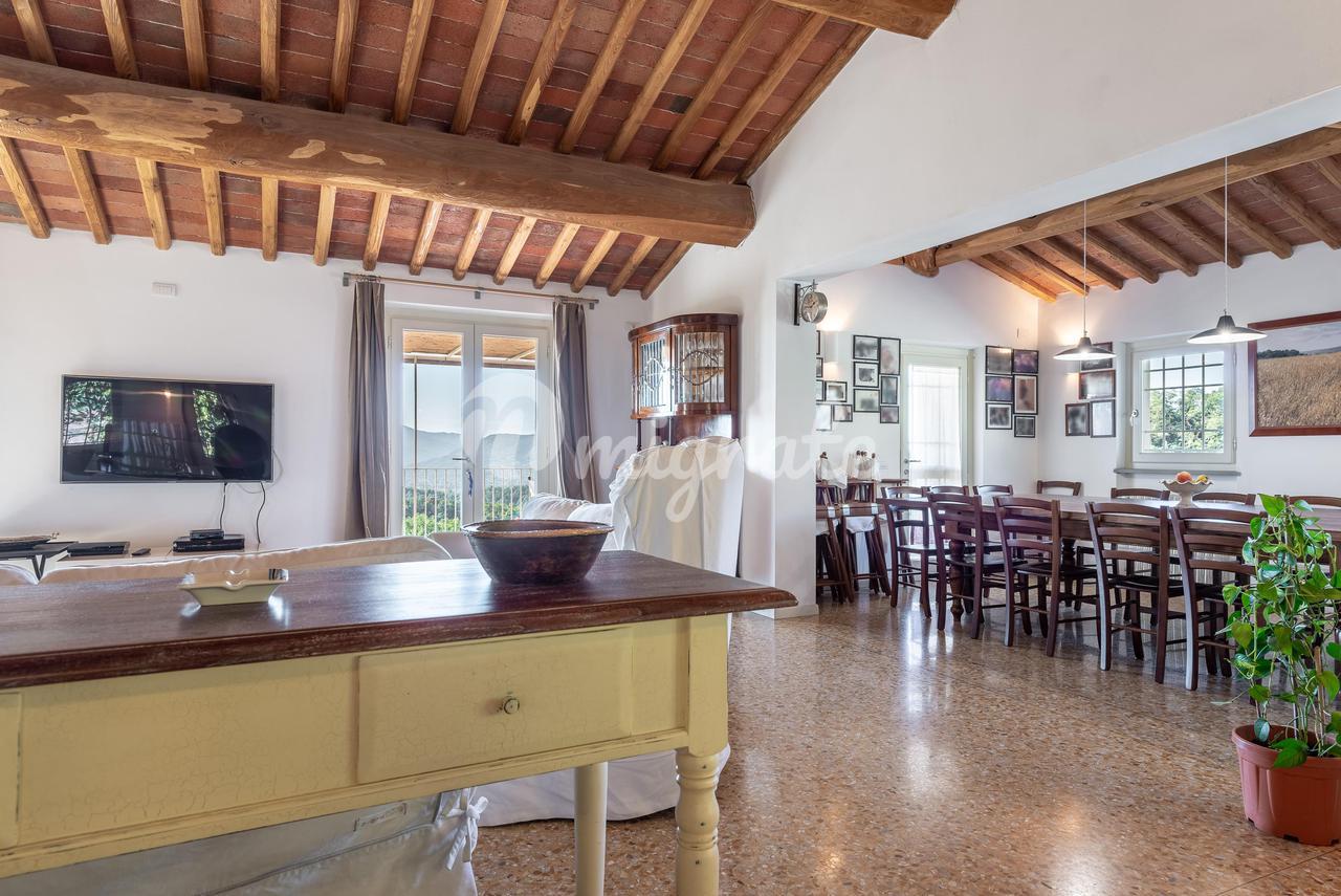 Эта элегантная вилла находится в выдающемся месте среди холмов к северо-западу от Лукки, в эксклюзивном месте с панорамным видом, и имеет бассейн. Вилла La Porcilaia была полностью перестроена из того, что изначально было сеновалом, и занимает два уровня, а также башню / комнату на верхнем этаже. Вход на первый этаж выходит в просторную и светлую гостиную открытой планировки с кухней и столовой площадью около 95 кв. М с выходом на крытую террасу с прекрасным видом. Это идеальное место для ужина на свежем воздухе с видом на бассейн и долину за его пределами. Коридор ведет к трем просторным спальням, все с ванными комнатами, а также к еще двум спальням с двуспальными кроватями и ванной. Существует также еще одна отдельная ванная комната меньшего размера. Внутренняя лестница ведет в башню с окнами от пола до потолка и небольшим балконом. Виды из этой комнаты поистине великолепны. Первый этаж состоит из большого коридора, большой комнаты отдыха / ТВ, с дополнительным подвалом, двух спален с двуспальными кроватями, большой ванной комнаты, турецкой бани, оборудованного спортзала, просторной прачечной и большого портика, а также квартиры сторожа с гостиная / кухня, спальня и ванная комната. Недвижимость окружена красивым садом и полностью огорожена. Есть ворота с дистанционным управлением, большая парковка и красивый бассейн размером примерно 18 х 8 м с техническим помещением. Кондиционер, Wi-Fi, сигнализация и солнечные батареи - это лишь некоторые из особенностей, предлагаемых этой замечательной виллой, отделка которой соответствует высочайшим стандартам.