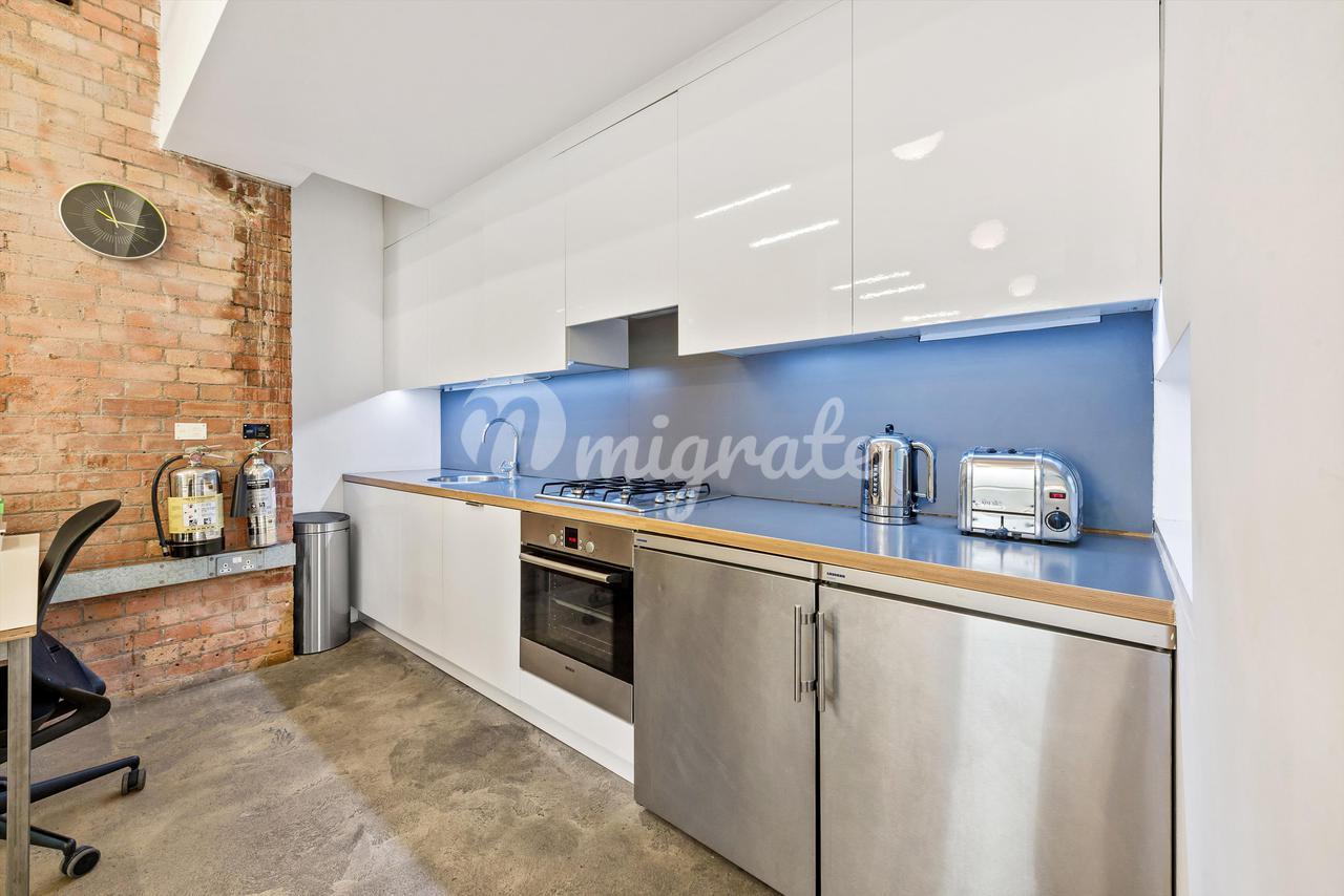 Единица 3. Двухуровневая недвижимость на первом этаже для проживания и работы, которая может быть идеальной для использования в качестве жилого дома с достаточным пространством для работы или для использования в качестве коммерческих помещений с открытой кирпичной кладкой и большими окнами в индустриальном стиле.