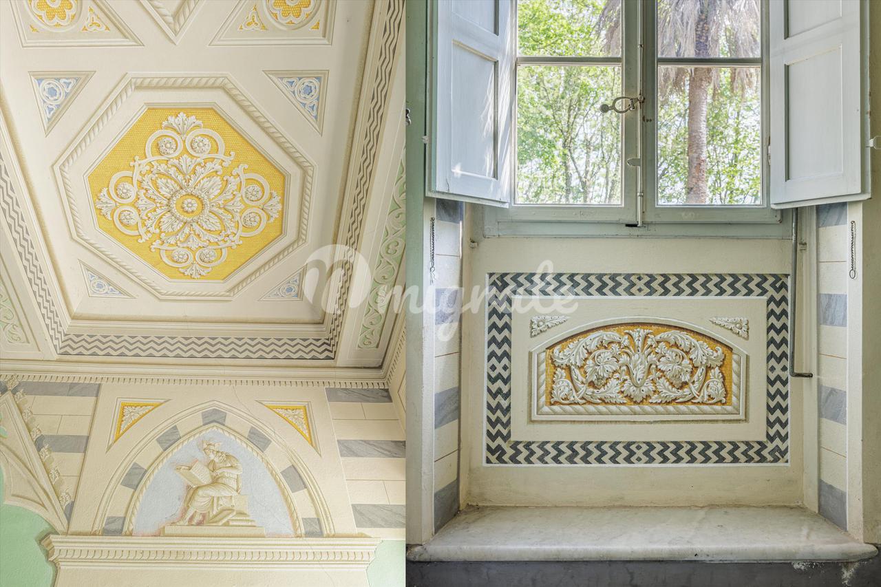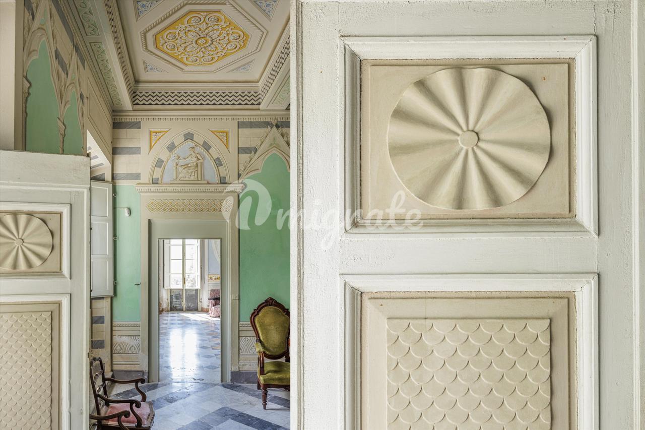 Это поместье было построено в начале 1800-х годов на фундаменте, первоначально относящемся к средневековому периоду, когда оно, вероятно, использовалось в качестве наблюдательного пункта над долиной. Он был окончательно отремонтирован в 1960-х годах. Поместье площадью около 2200 кв. м включает в себя жилые и сельскохозяйственные постройки и сад площадью около 0,7 га. Вилла имеет 1500 кв.м жилой площади, расположена на 3 этажах и в настоящее время разделена на 5 независимых апартаментов с двойными входами, сообщающимися с центральными залами, с красивыми потолками и стенами, украшенными фресками, и элегантными мраморными полами. Он состоит из 3 больших залов, 3 столовых, 4 кухонь, 2 кабинетов, 15 спален и 9 ванных комнат. Пристройки состоят из фермерского дома, включающего частную часовню, складских помещений площадью около 300 кв.м, лимонного домика площадью около 130 кв.м, сарая площадью около 150 кв.м и других служебных зданий площадью около 125 кв.м, включая Темпьетто с террасой 1813 года постройки, с которой вы можете любоваться панорамным вид на долину. Сад полностью огорожен внешней каменной стеной и состоит из верхней и нижней частей, в которых растет множество фруктовых растений. Вилла находится в хорошем состоянии и пригодна для жилья, но нуждается в ремонте и модернизации. Приложения требуют существенной реструктуризации и модернизации.