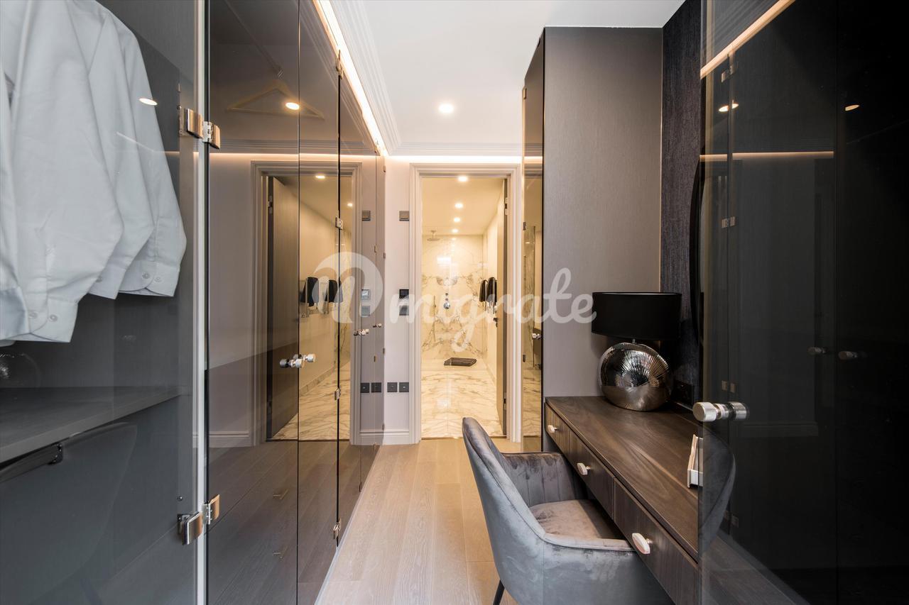 Уютная прихожая на первом этаже ведет в большую приемную и столовую с двустворчатыми дверями, выходящими в частный ландшафтный сад. Потрясающая кухня оснащена современной техникой, умным холодильником и островом с винным холодильником и барной стойкой. На первом этаже есть дополнительная формальная стойка регистрации с красивой мраморной стеной и подсветкой. Поразительным аспектом этого дома является бескомпромиссное пространство, предусмотренное в каждой спальне, с четырьмя спальнями, каждая из которых имеет встроенную кладовую и ванную комнату, все с красивой и стильной отделкой. Пятая спальня в настоящее время оборудована как домашний офис с раздвижными дверями на балкон, а также предусмотрена дополнительная душевая и подсобное помещение.