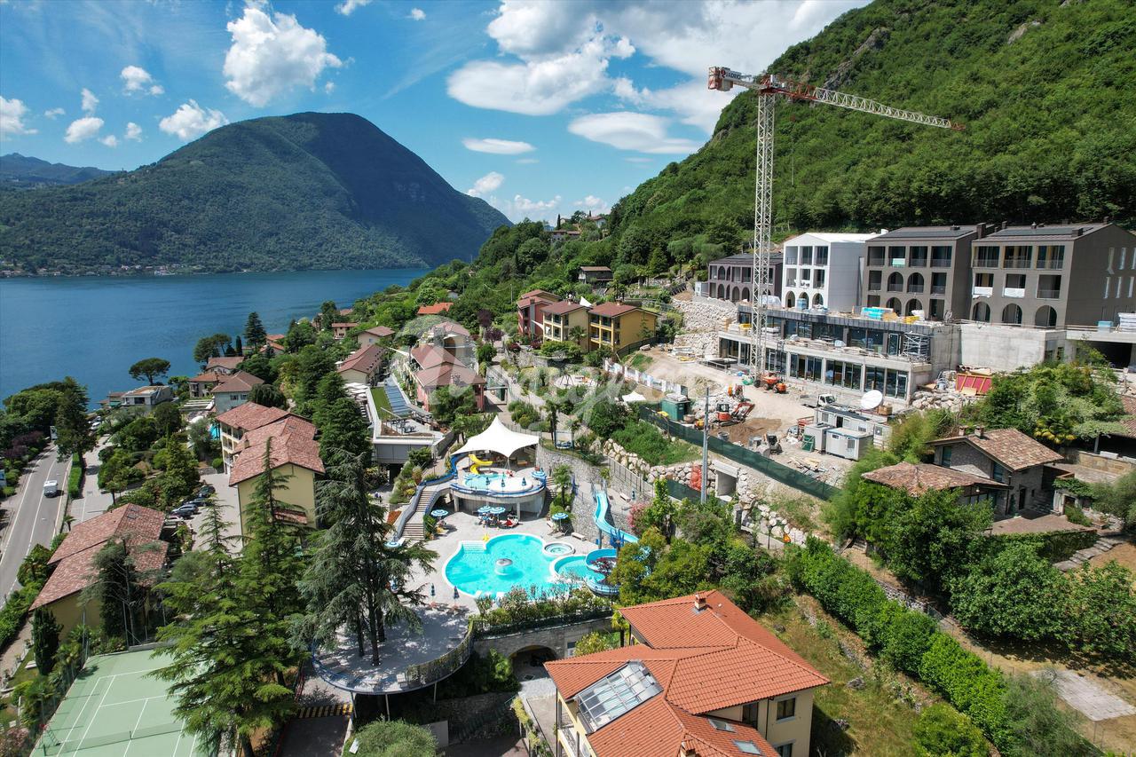 Комплекс предлагает бесплатный доступ к пяти бассейнам, пяти ресторанам, теннисному корту, СПА, 5-звездочному гостиничному сервису, расширению 40 000 квадратных метров оборудованного парка, частному и прямому выходу к озеру, более 200 000,00 квадратных метров леса (зеленые легкие). ) граничит вверх по течению. 4 люкса разделены на четырехкомнатные апартаменты площадью 210 квадратных метров с тремя спальнями в каждом, ванными комнатами, а также служебным санузлом в жилой зоне. Все с лоджией и/или частным садом, парковочным местом и подвалом.
