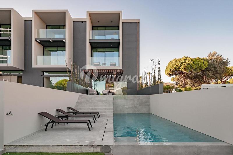 Недавно построенный современный таунхаус с 3+1 спальнями расположен в жилом комплексе Vilas Alvas, между гольф-курортами Quinta do Lago и Vale do Lobo, в нескольких минутах езды от популярных пляжных