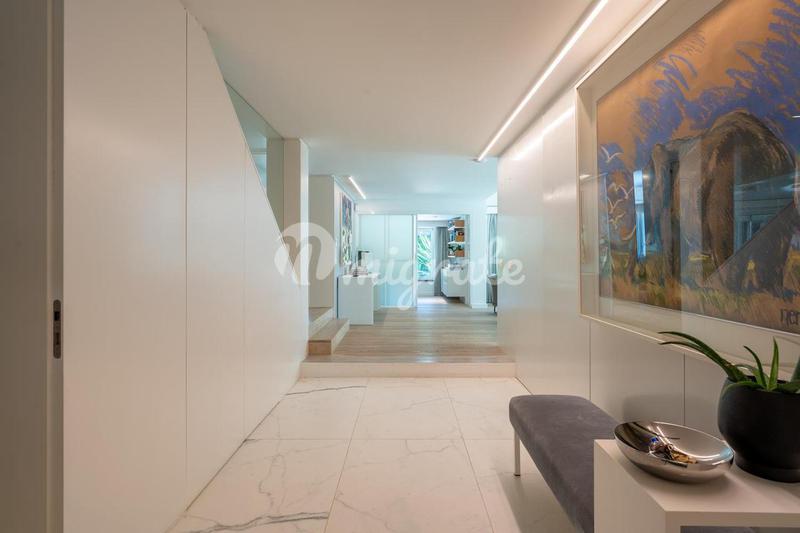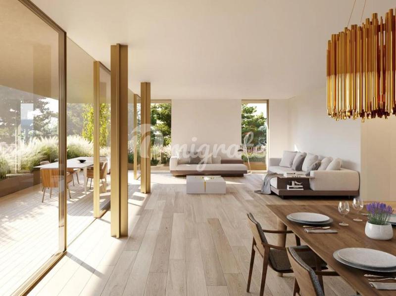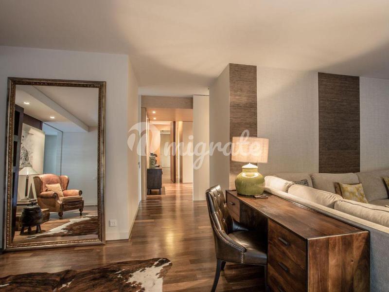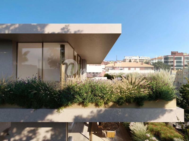 Трехкомнатная квартира с террасой в частном кондоминиуме с бассейном, круглосуточной охраной, сауной и садом, напротив казино Эшторил. Это свойство имеет 200 кв. м частной территории. В нем есть прихо