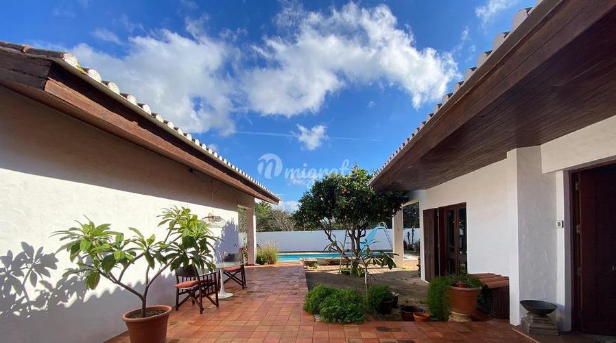 Дом расположен в прекрасном уединенном месте с живописными пейзажами в Алгарве, на участке площадью 17 га, в 20 минутах езды от Лагуша. На участке находится бассейн, теннисный корт и гараж. Основной д