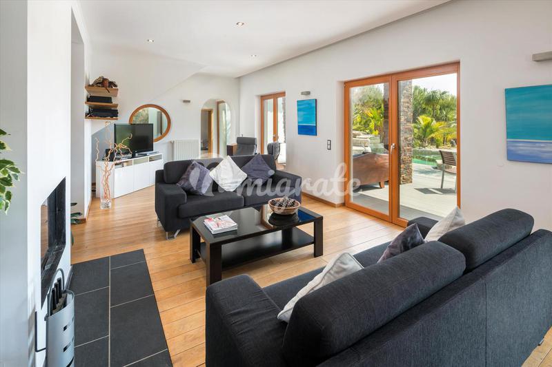 Вилла с видом на море расположена в Лагуше, в нескольких минутах от порта и центра города. Главный дом состоит из 4 спален, 3 ванных комнат, просторной гостиной, столовой, кухни, полностью оснащенной