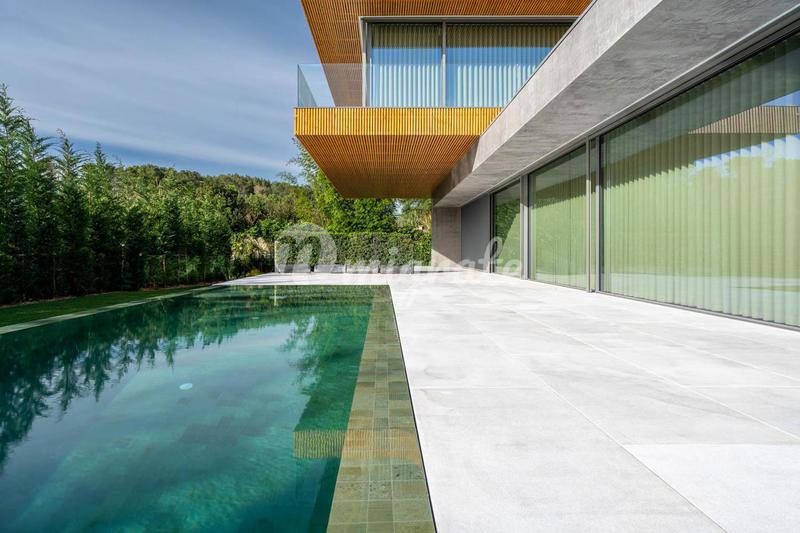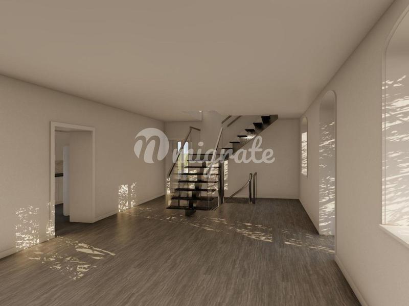 Это свойство имеет современный дизайн и расположено на трех этажах. Он предлагает около 208 кв м жилой площади и находится на участке около 512 кв м с садом и бассейном. На первом этаже есть прихожая,