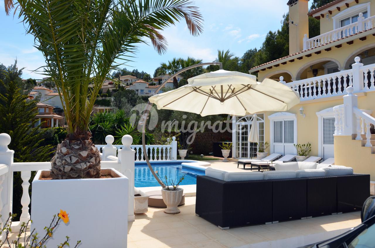 Вилла расположена в закрытом охраняемом поселке на побережье Коста-Бланка, между Аликанте и Валенсией, рядом с прекрасным старинным городом Дения. Из поселка открывается прекрасный вид на природный парк.
