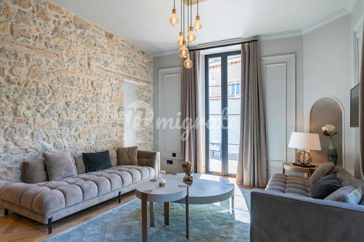 Полностью отреставрированная в 2020 году квартира площадью 135 м² расположена на Лазурном берегу в городе Канны. Квартира в османском стиле, с лепниной, паркетным полом, оформлена в теплых тонах. Квартира включает в себя 5 спален, 5 ванных комнат, просторную гостиную с баром, оборудованную кухню, 2 террасы, одна из которых площадью 40 м² выходит на юг, а другая площадью 35 м² - на запад.