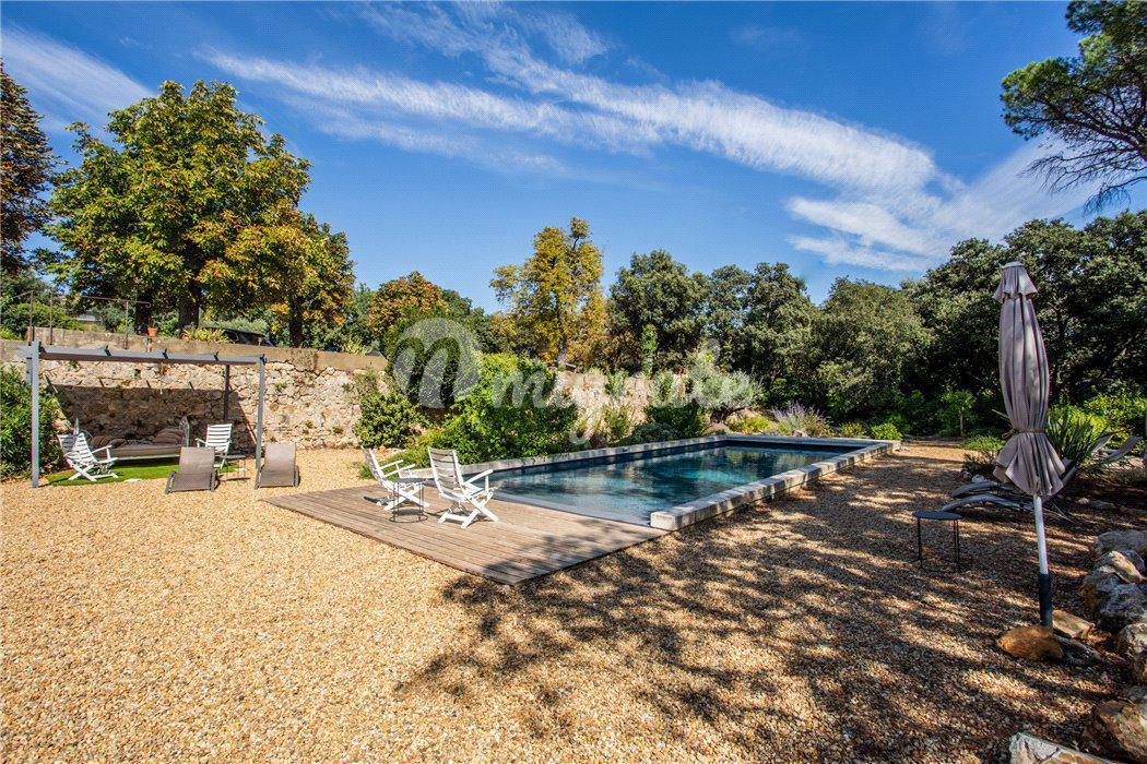 На участке расположен подогреваемый бассейн, летняя кухня и террасы на открытом воздухе.