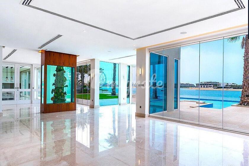 Мы рады представить вам виллу, расположенную на первой линии острова Палм - Джумейра. Вилла имеет прекрасные панорамные виды на Персидский залив. Площадь - 416 кв. м. В общей сложности шесть просторных спален. Также есть частный бассейн и гараж. Рядом с виллой рестораны, кафе, яхт-клуб, торговый центр.