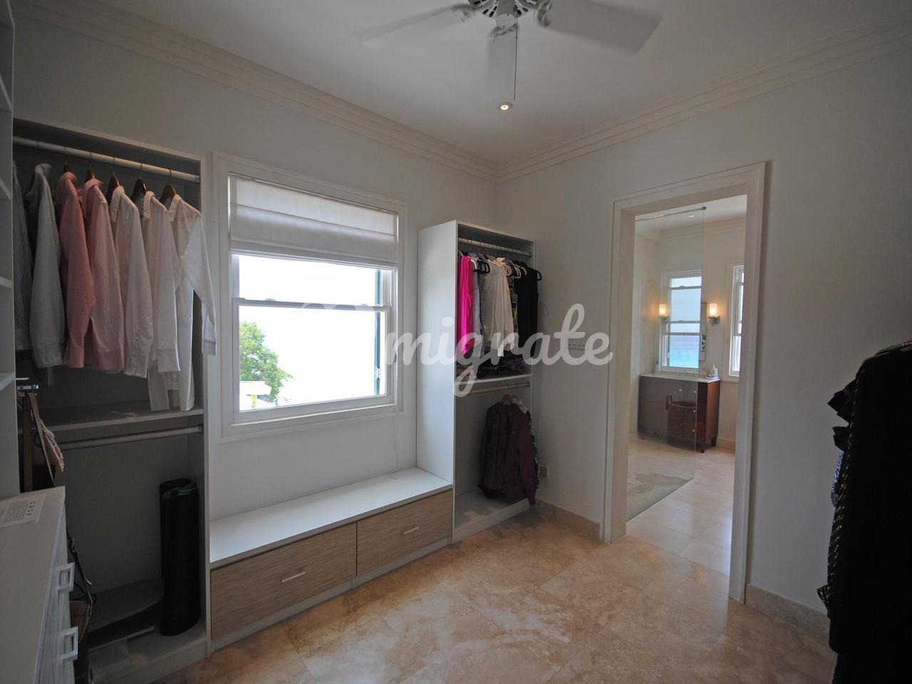На втором этаже расположены 3 большие спальни, главная спальня имеет выход на балкон и просторные ванные комнаты с гардеробными. Две другие комнаты для гостей с ванными комнатами также находятся на этом уровне. Каждый этаж соединен привлекательной лестницей из нержавеющей стали и травертина с вентилируемыми световыми люками.