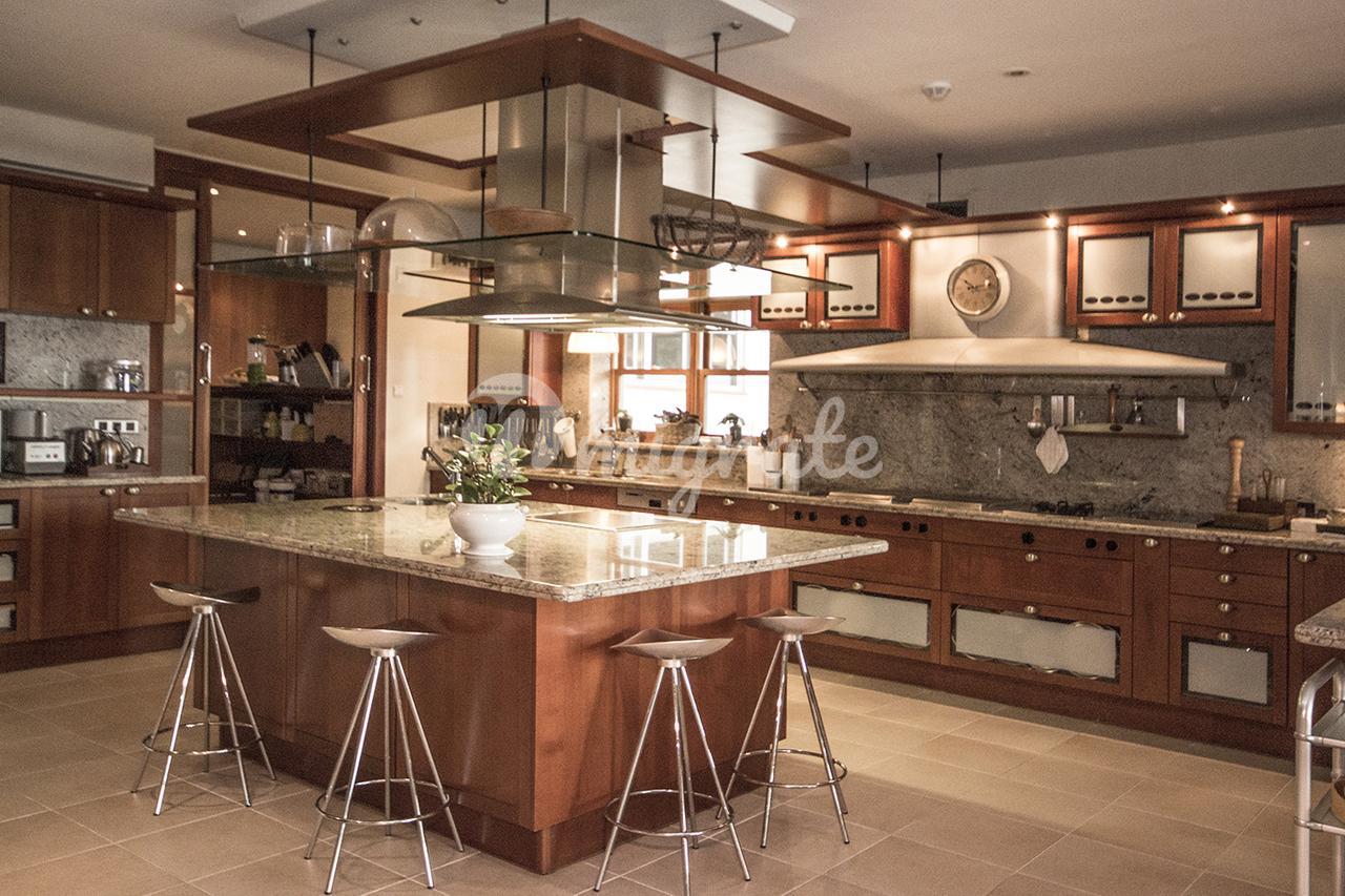 Основной дом состоит из трех этажей. Цокольный этаж включает тренажерный зал, роскошный крытый бассейн, ванную комнату, сквош-корт, винный зал и просторную гостиную. На первом этаже находится просторная гостиная, полностью оборудованная кухня открытого плана, прачечная, спальня для персонала с отдельным доступом, гостевой санузел, кабинет, основная спальня с личной гостиной, двумя гардеробными и двумя ванными комнатами. На втором этаже расположен домашний кинотеатр и 3 спальни с ванными комнатами, собственными гостиными и террасами.