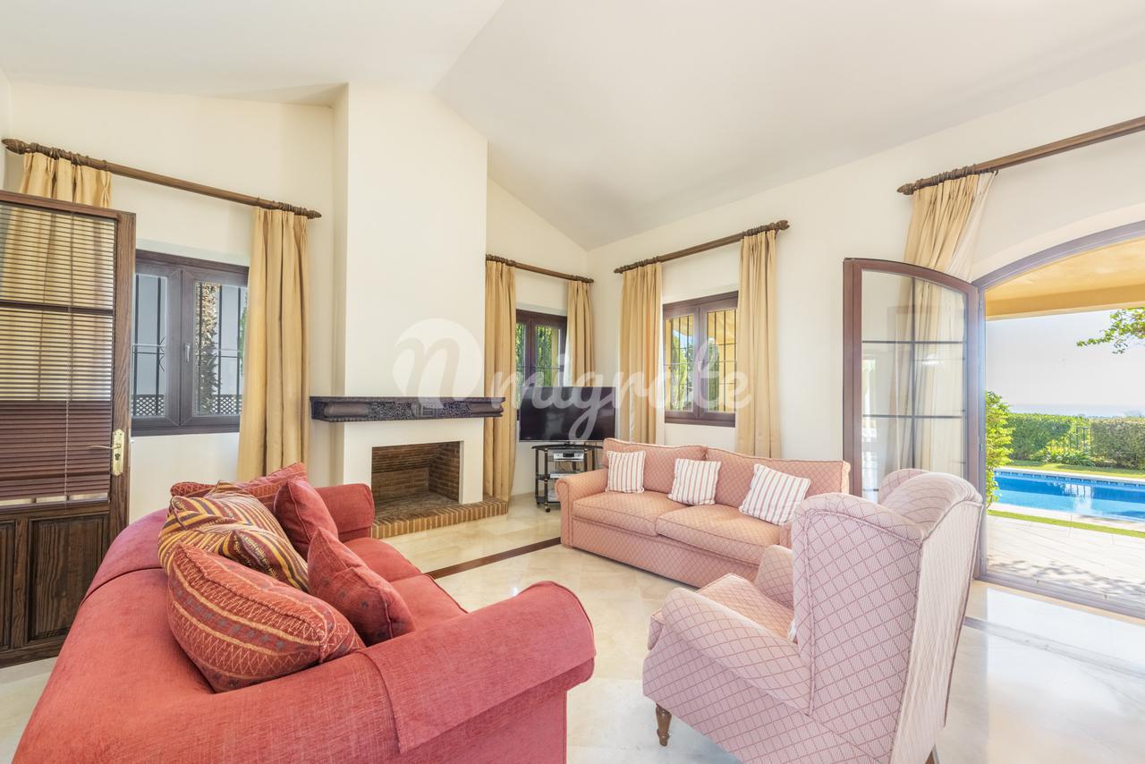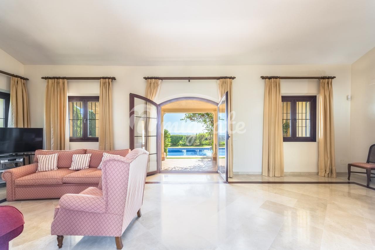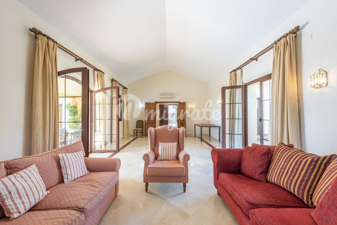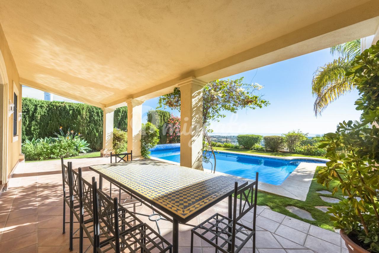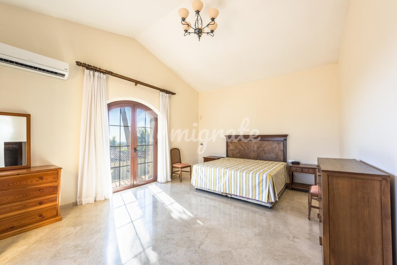 Вилла в традиционном стиле, расположенная в закрытом сообществе Ла Ресина, которое расположено в Пуэрто-дель-Альмендро, тихом и зеленом районе, соседствующем с гольф-клубом Los Arqueros golf and country club. Дом находится примерно в 7,2 км от центра города Сан-Педро-де-Алькантара и пляжа.