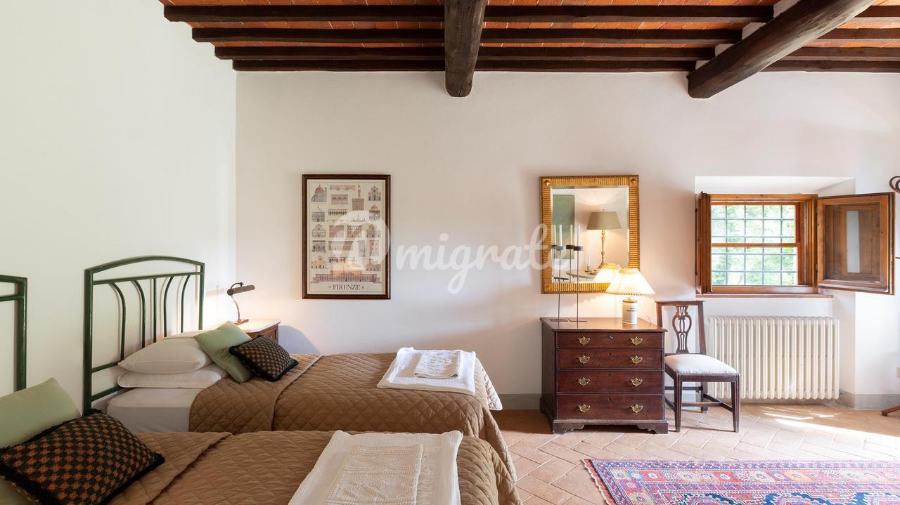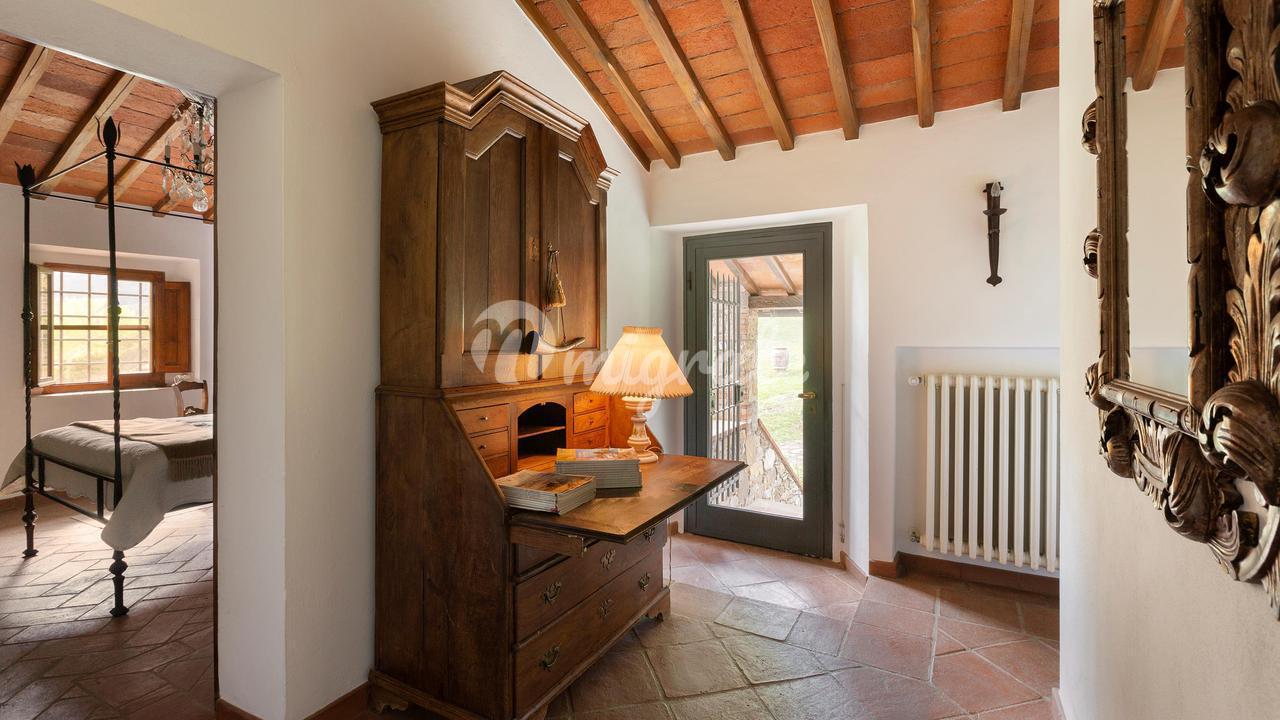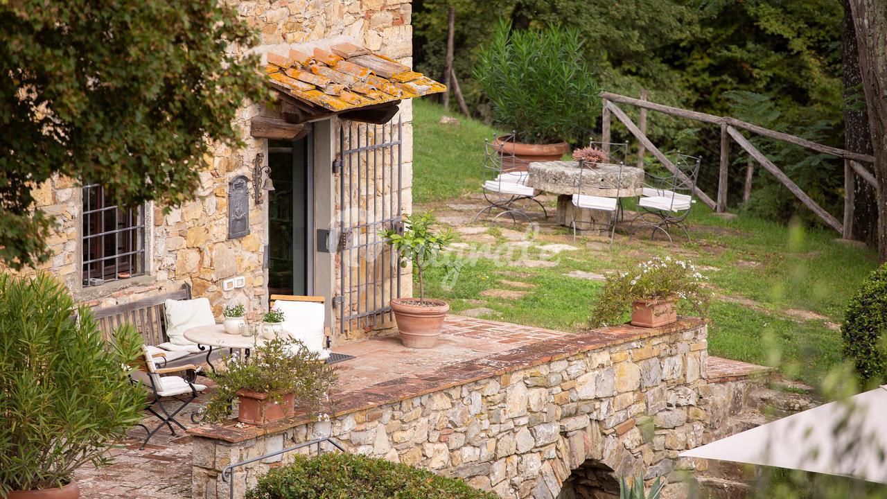 Эта расположенная на возвышенности мельница первоначально была частью Ла-Пьеве-ди-Санта-Мария-Новелла и обслуживала ее. Она датируется 13 веком. Расположенный чуть ниже деревушки Вольпайя, на тихих нетронутых холмах между Радда-ин-Кьянти и Панцано, он имеет чудесный вид на юг, в сторону Радды и окружающей сельской местности. Имущество состоит из 2 зданий, полностью огорожено, к нему ведет частная подъездная дорога. Оно было отреставрировано с использованием традиционных материалов, чтобы создать хорошо оборудованный дом, не умаляя красоты оригинальной структуры. Главный дом состоит из гостиной с оригинальным угловым камином, столовой открытой планировки и кухонной зоны с полностью оборудованной кухней "Шалон" ручной работы на первом этаже. Дверь ведет на огромную открытую крытую террасу, которая первоначально была резервуаром для воды на мельнице, а теперь используется для обедов на свежем воздухе с зоной отдыха для круглогодичного использования. Открытая лестница ведет на 1-й этаж с лестничной площадкой, двумя спальнями с ванными комнатами и дверью, ведущей в сад. Под этим домом также есть небольшая кантина. Второе здание состоит из 2 спален с ванными комнатами и имеет 2 отдельных входа. Здесь находится примерно 1,8 Га земли, включая газоны, сады, оливковые террасы и лесные массивы, а также бассейн размером 23 метра в том месте, где раньше был резервуар для второй мельницы. Вокруг обоих домов и бассейна есть много зон отдыха и террас. Услуги: внешнее освещение, автоматический полив, 1 новая артезианская скважина, 2 резервуара для воды по 1200 литров, телефон, интернет, система очистки воды и центральное газовое отопление. Повсюду уложены терракотовые полы и деревянные балки. Также в распоряжении гостей хлебопекарная печь глубиной 3 метра. Недвижимость продается полностью меблированной, а также включает в себя садовое и земельное оборудование.
