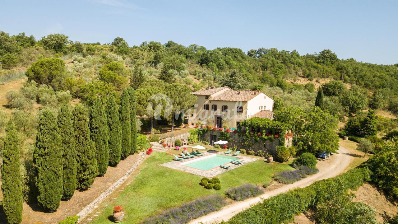 Это здание 17 века расположено в тихой загородной местности, всего в нескольких минутах езды от Панцано. Окруженный примерно 3,5 Га земли, включая оливковые рощи, дом выходит окнами на свой прекрасный бассейн и удивительную сельскую местность за его пределами. Расположенный в идиллическом и спокойном окружении, подъезд осуществляется по белой дороге, обсаженной типичными тосканскими кипарисами. Являясь идеальным семейным домом или арендуемой недвижимостью, он был очень тщательно отреставрирован с учетом всех оригинальных особенностей, создавая при этом комфортный и очаровательный дом. Жилье включает в себя большие подвалы на нижнем цокольном этаже, включая прачечную. Эти сводчатые помещения были отреставрированы, но оставлены пустыми, чтобы использовать их для хранения или дальнейшего размещения. Первый этаж включает в себя несколько приемных и гостиных, столовую, кухню и ванную комнату с возможностью повторного открытия доступа в смежную гостиную, 2 спальни и ванную комнату. Удивительно просторная терраса с беседкой, увитой глицинией, предлагает тень, с которой можно наслаждаться поистине захватывающим видом на долину. На втором этаже находится большая центральная гостиная, 4 спальни и 3 ванные комнаты. Лестница ведет на второй этаж, где находятся спальня, ванная комната и гостиная. На участке растут 120 оливковых деревьев, и тесты показали, что он идеально подходит для виноградников.