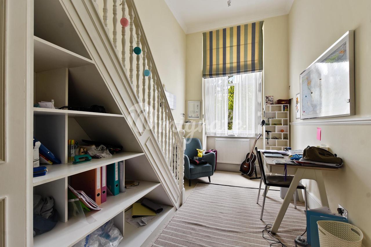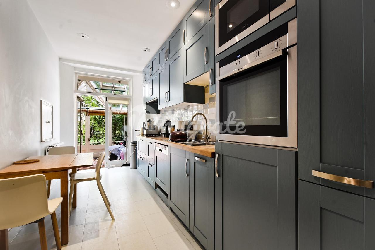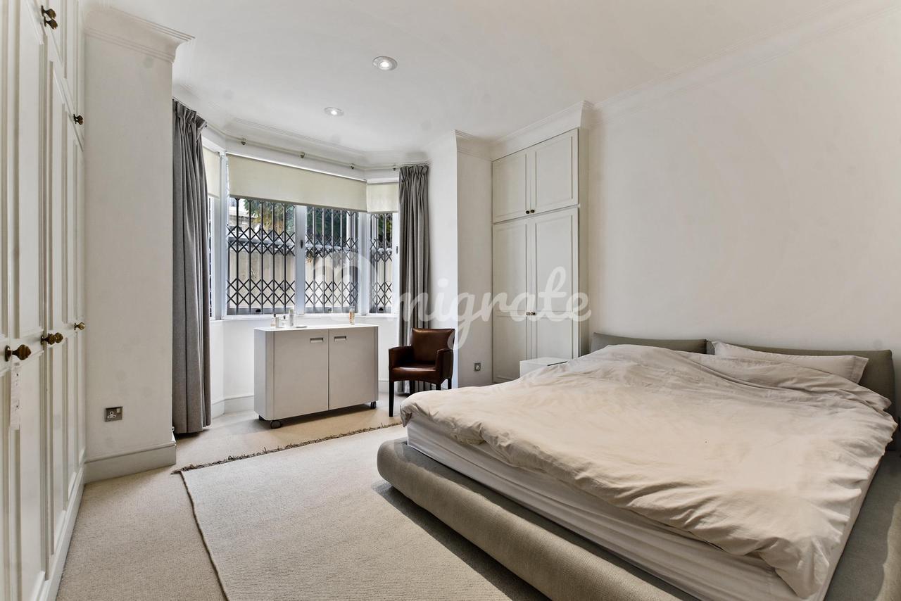 Приподнятый цокольный этаж может похвастаться невероятной высотой потолков, что обеспечивает обилие естественного света. Из главной приемной открывается вид на коммунальные сады, а также к ней можно пройти напрямую по лестнице. Из гостиной есть выход на южную сторону балкона. Есть также две спальни на этом уровне с семейной ванной и душевой комнатой. Нижний этаж, где вы найдете главный вход в собственность, имеет большое пространство и является домом для второй гостиной, а также отдельной кухни. Приемная и кухня перетекают прямо в исключительно редкий зимний сад в задней части дома, который затем дает доступ к частному саду во внутреннем дворике, а затем к общему саду.