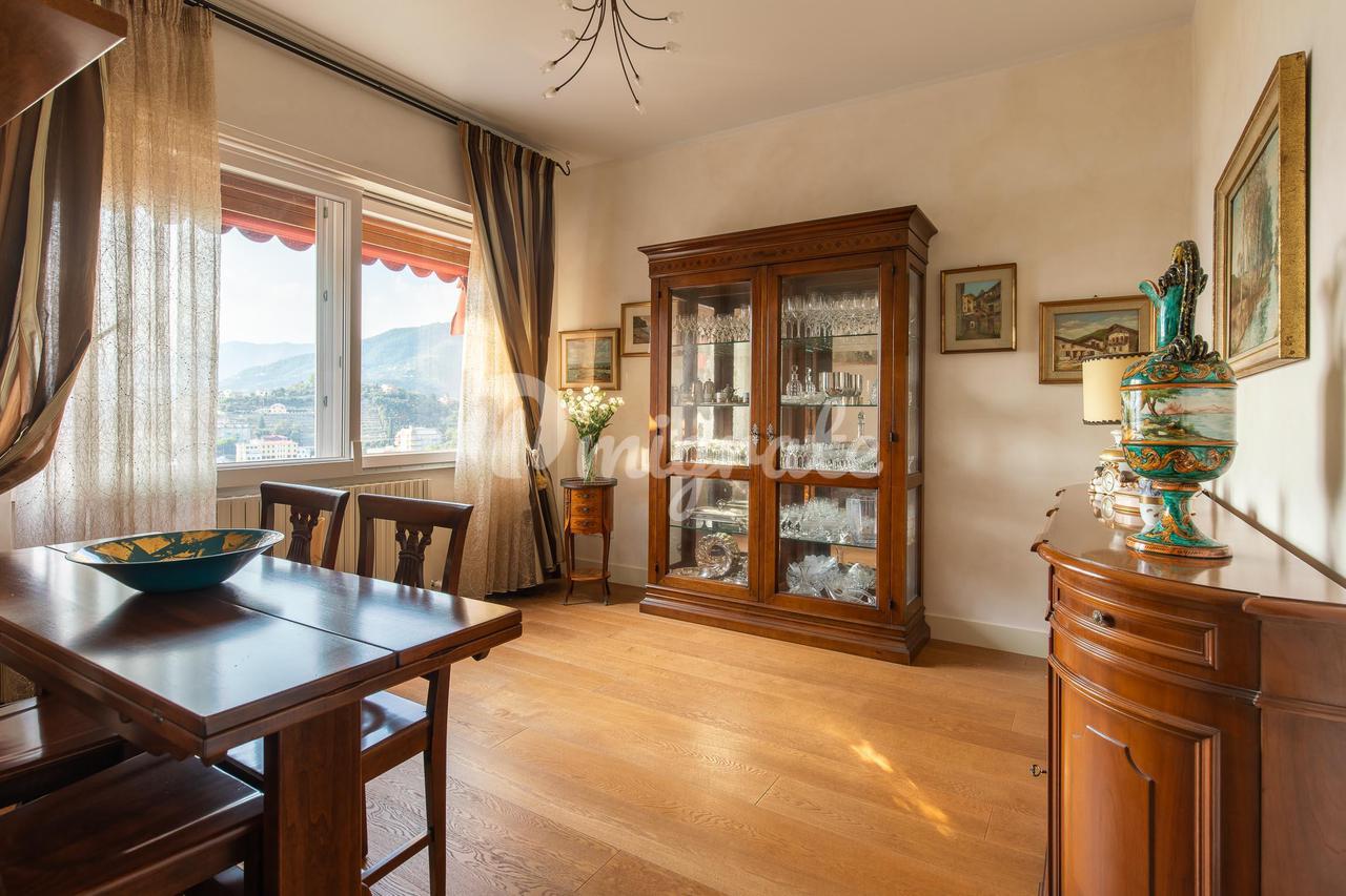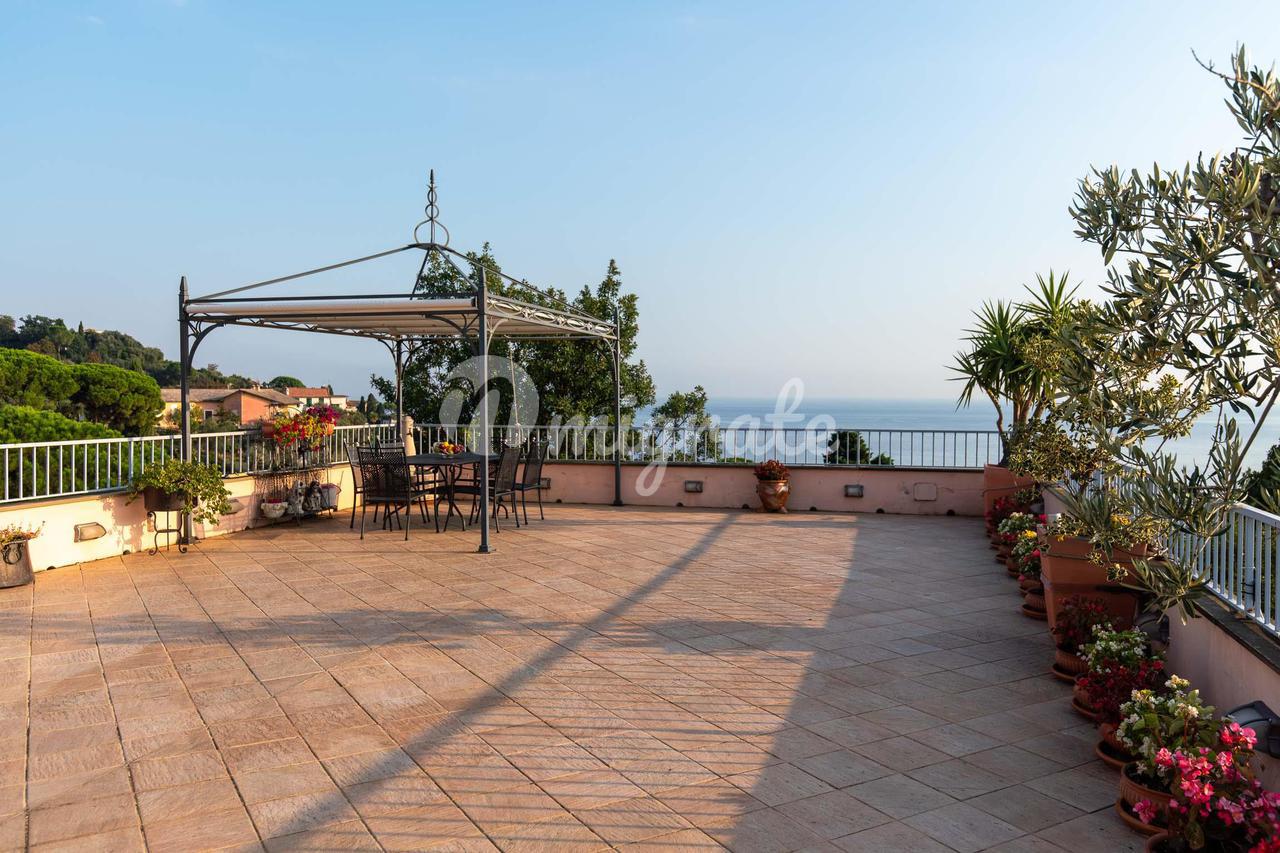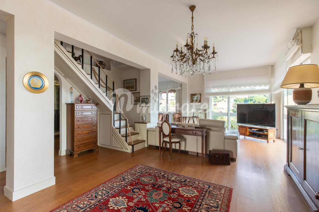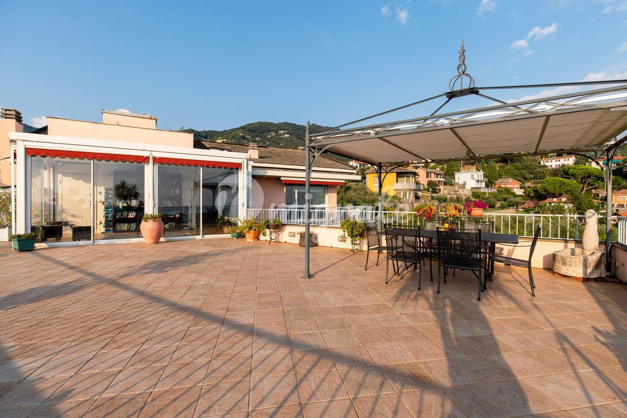 Этот великолепный отель, уникальный в своем роде, расположен на верхнем этаже величественного здания недалеко от Parco Casale (парк Рапалло), с очаровательным 360-градусным видом на море, побережье и окружающие холмы. Квартира расположена на двух этажах и окружена большой и красивой террасой с видом на зелень и море, которую можно оборудовать беседкой, барбекю, обеденной зоной на открытом воздухе, зоной отдыха с качелями и т. д. Вход находится на первой веранде, выходящей на юг, с видом на море. На этом первом этаже, помимо террасы площадью 230 кв. м и двух больших балконов, находится двойная гостиная, кухня и вторая веранда, где находится столовая с барной зоной. Спальная зона состоит из двух больших ванных комнат - одна с душем и одна с ванной и душем, а также трех спален. Из гостиной по деревянной лестнице вы попадаете на мансардный этаж с еще одной спальней или игровой комнатой для детей, просторной ванной комнатой с прачечной и большим коридором, используемым как кладовая и гардеробная. Дом в отличном состоянии, украшен элегантной отделкой. В собственности также есть очень просторный гараж, в котором можно разместить большой автомобиль, любой мотоцикл или велосипед.