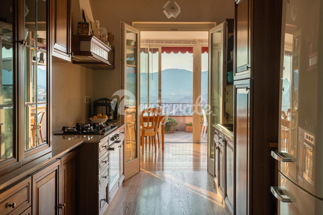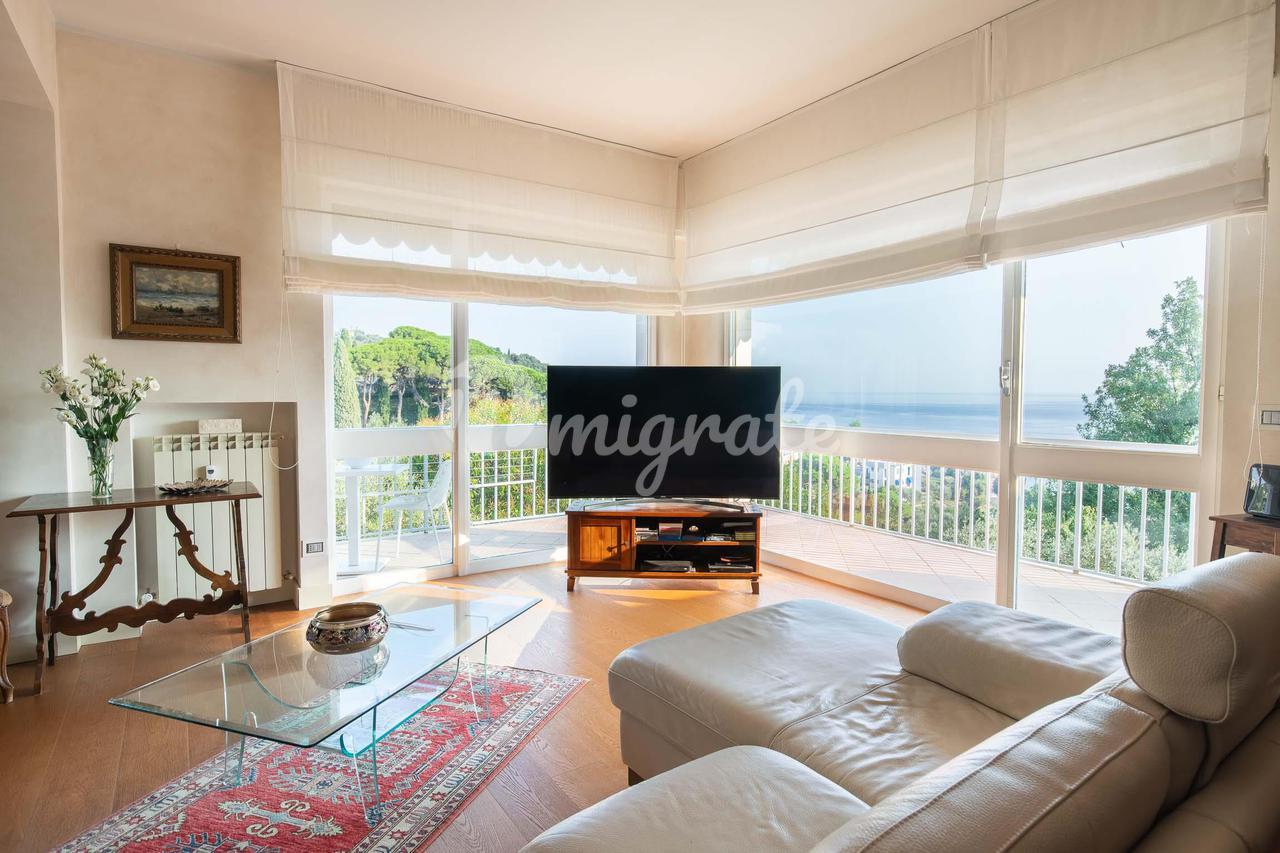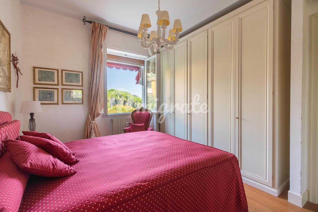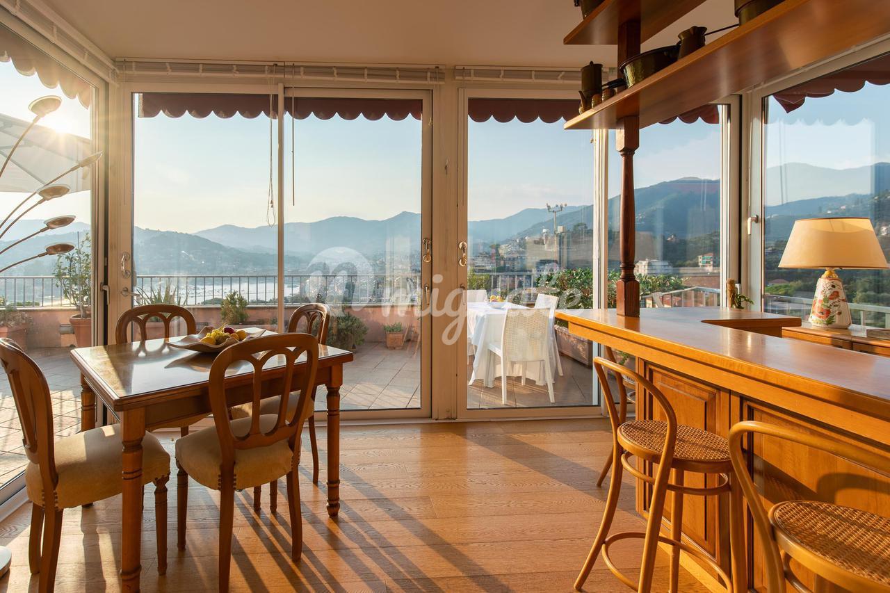 Этот великолепный отель, уникальный в своем роде, расположен на верхнем этаже величественного здания недалеко от Parco Casale (парк Рапалло), с очаровательным 360-градусным видом на море, побережье и окружающие холмы. Квартира расположена на двух этажах и окружена большой и красивой террасой с видом на зелень и море, которую можно оборудовать беседкой, барбекю, обеденной зоной на открытом воздухе, зоной отдыха с качелями и т. д. Вход находится на первой веранде, выходящей на юг, с видом на море. На этом первом этаже, помимо террасы площадью 230 кв. м и двух больших балконов, находится двойная гостиная, кухня и вторая веранда, где находится столовая с барной зоной. Спальная зона состоит из двух больших ванных комнат - одна с душем и одна с ванной и душем, а также трех спален. Из гостиной по деревянной лестнице вы попадаете на мансардный этаж с еще одной спальней или игровой комнатой для детей, просторной ванной комнатой с прачечной и большим коридором, используемым как кладовая и гардеробная. Дом в отличном состоянии, украшен элегантной отделкой. В собственности также есть очень просторный гараж, в котором можно разместить большой автомобиль, любой мотоцикл или велосипед.