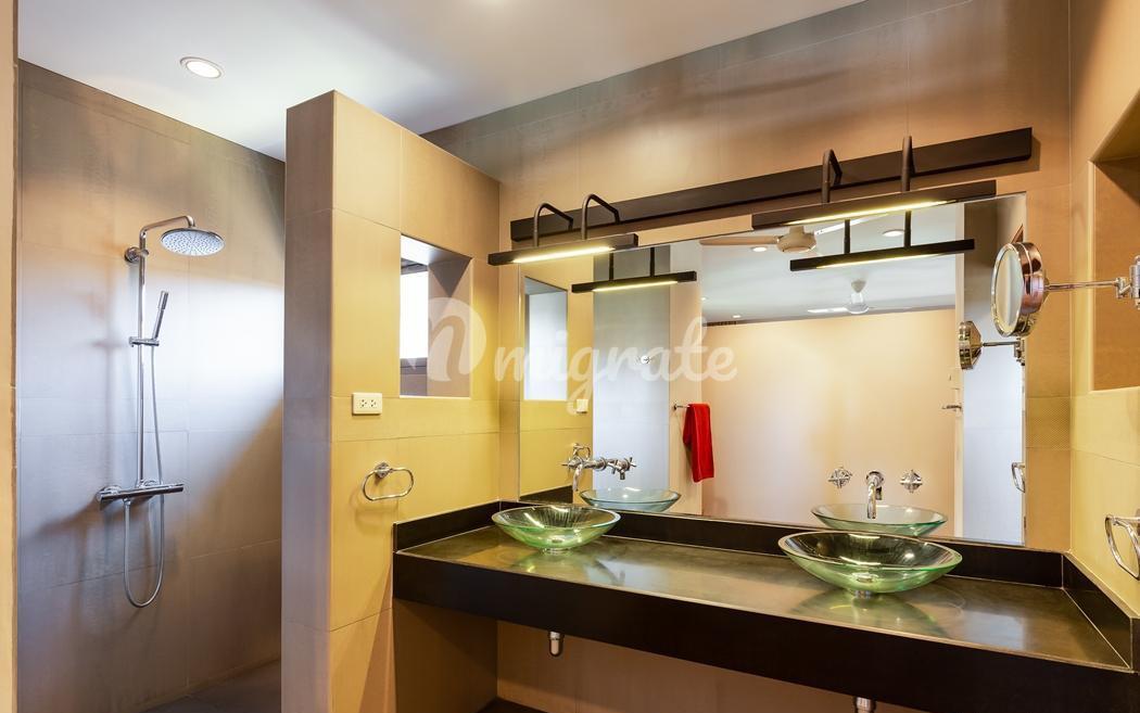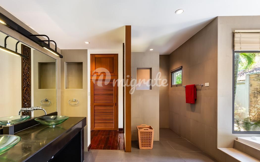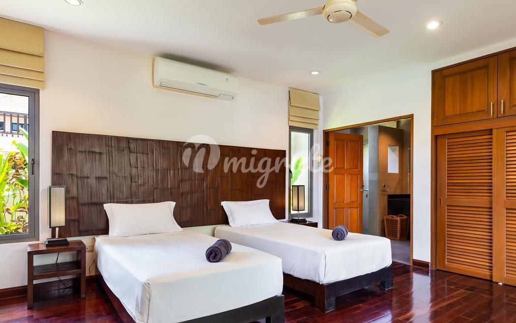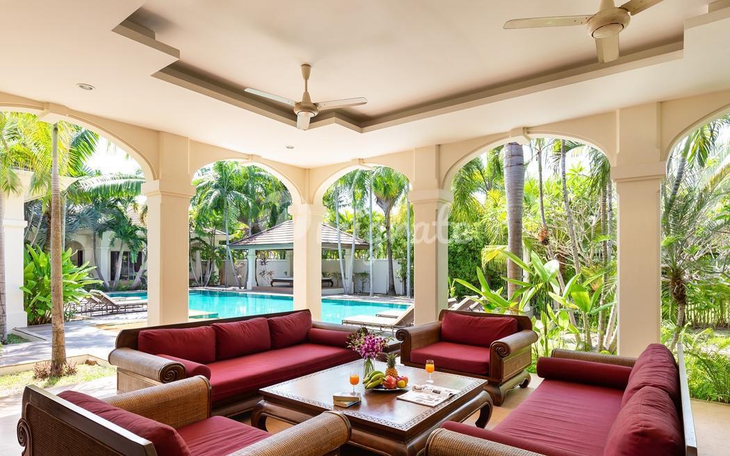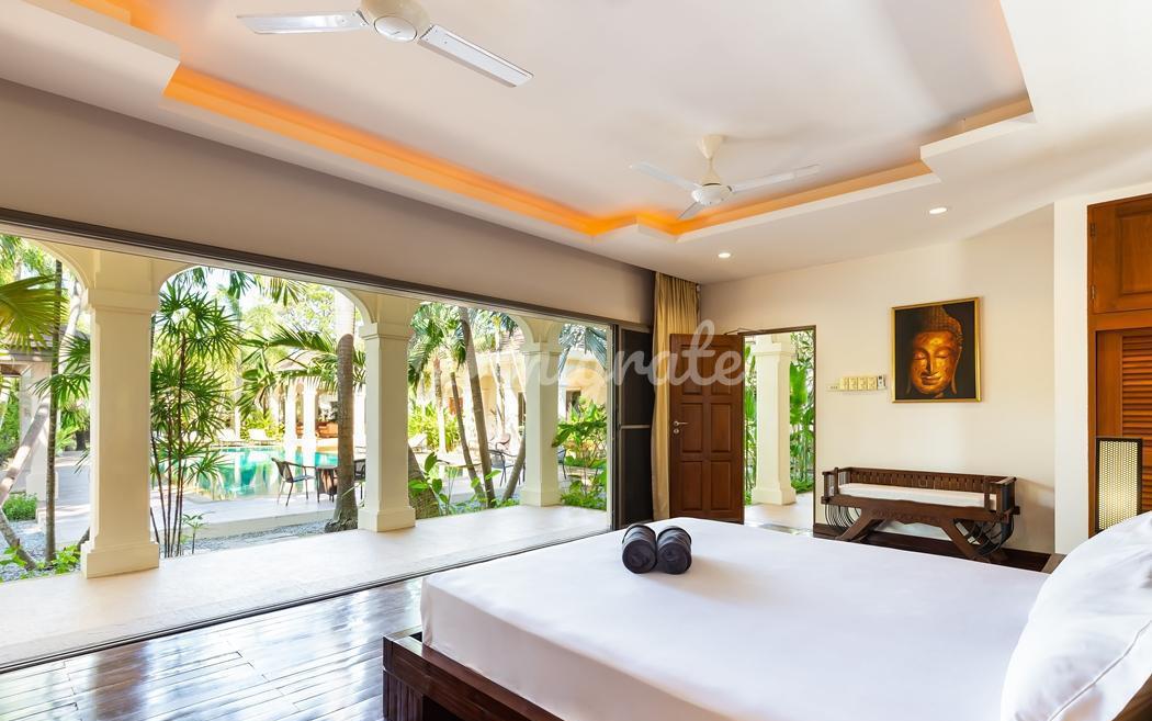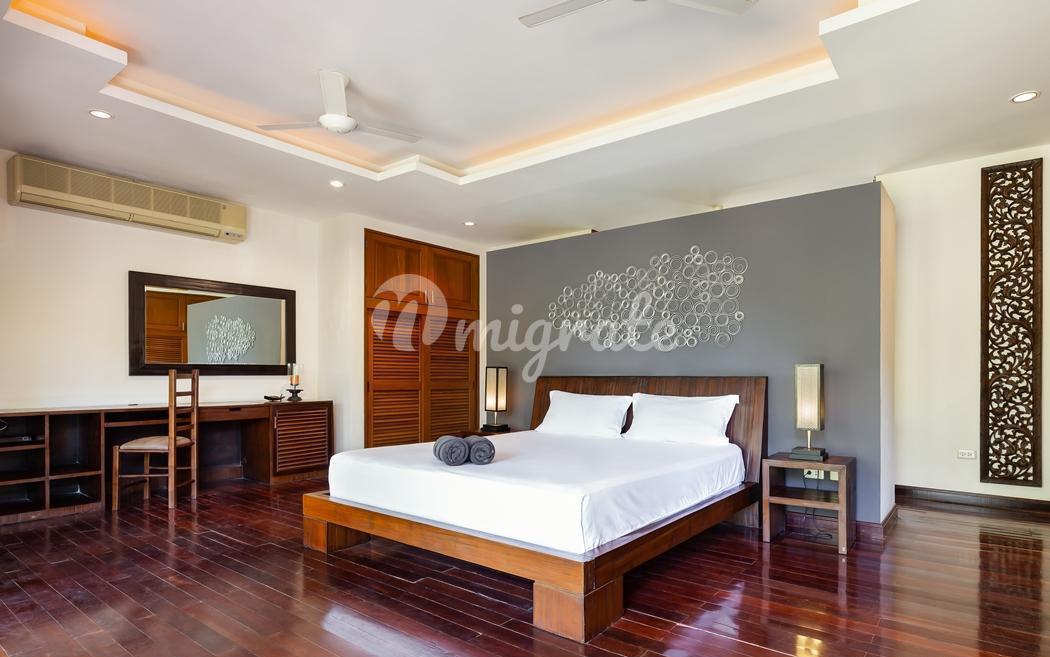 Эта вилла была спроектирована и меблирована по самым высоким стандартам. Интерьер сочетает в себе простор, элегантность и комфорт. Он имеет застроенную площадь 1000 кв.м. и 700 кв.м. из которых интерьер. При входе в этот 2260 кв.м. участок вы найдете большой 50 кв.м. пруд с красочными карпами кои. Эта вилла с 6 спальнями и бассейном состоит из 2 главных спален и главных ванных комнат, а также 4 больших просторных спален с ванными комнатами. Каждая спальня оборудована телевизором, DVD-плеером, кондиционером и вентилятором, сейфом, мини-баром и электрической шторкой. Во всех спальнях есть большие раздвижные стеклянные двери, ведущие на террасу, к бассейну и в сад.