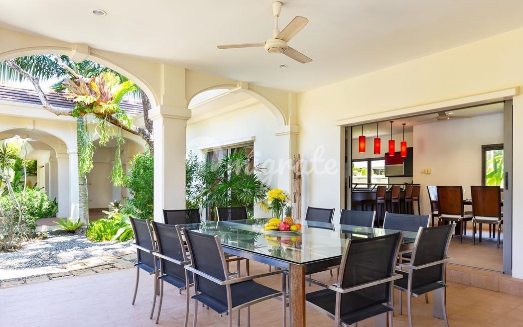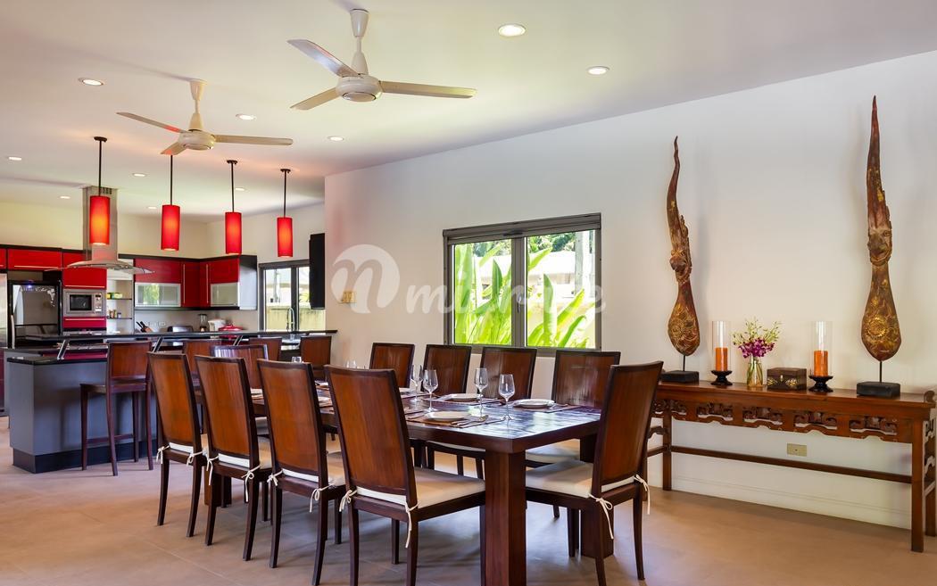 Есть 2 гостиные и 2 столовые (открытая/крытая). Имеется комната отдыха/игр с бильярдом, настольным футболом и дартс. Европейская/западная кухня открытой планировки изготовлена по индивидуальному заказу и укомплектована фирменной техникой. Есть комната для прислуги, отдельная от главной виллы и с отдельным входом. Имеется собственная скважина с пресной водой. И, наконец, система видеонаблюдения окружает виллу для дополнительного комфорта и безопасности.