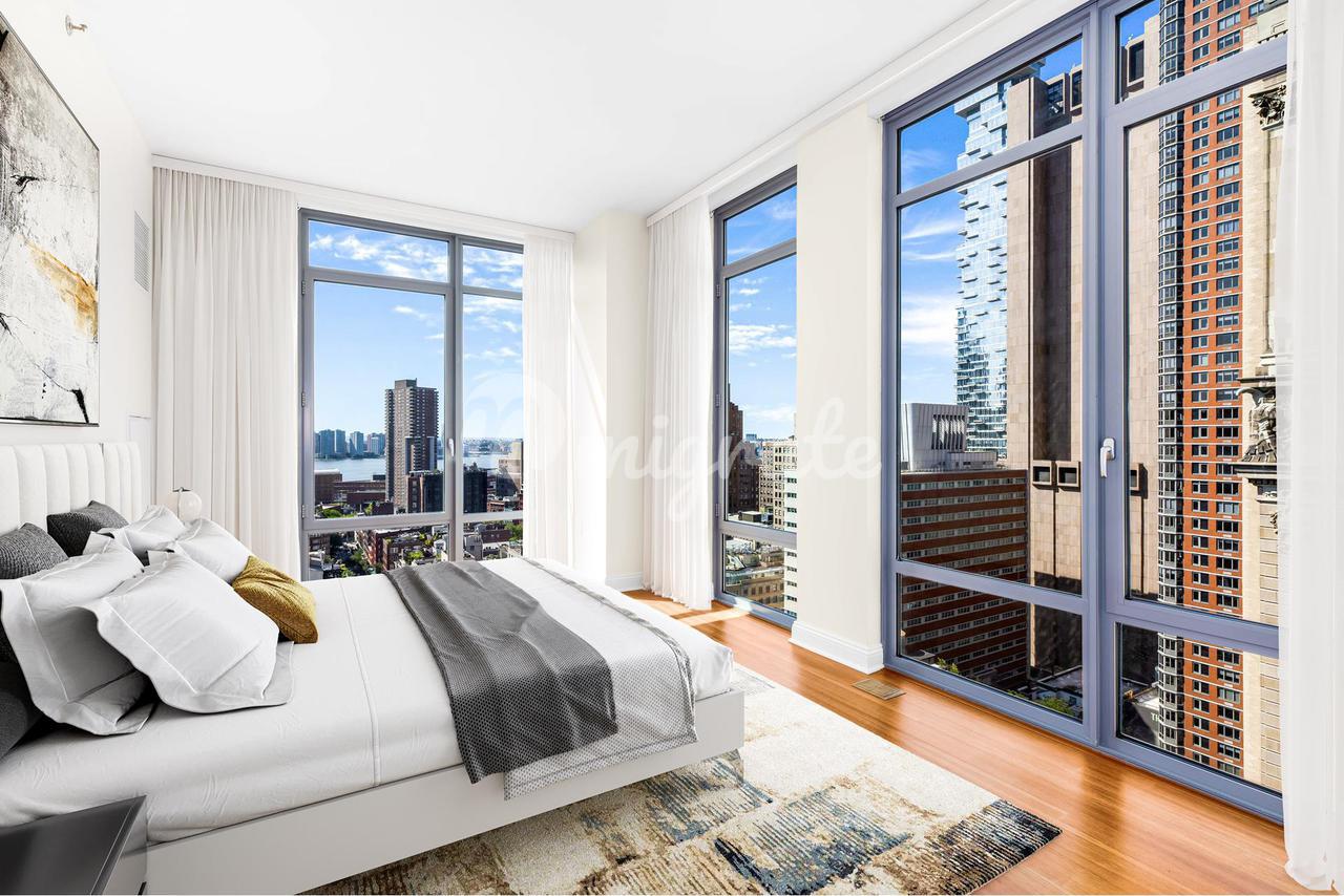 Отдохните в своем основном люксе с кроватью размера "king-size", украшенном стеной из окон, из которых открывается вид на город. Впечатление дополняет исключительное пространство встроенного шкафа и большая гидромассажная ванна с изготовленным на заказ туалетным столиком из орехового дерева с мраморной столешницей, плиткой из известняка, глубокой ванной и отдельным душем. Вторая спальня также просторная и уютная, с вместительными шкафами. Вторая высококачественная ванная комната с изготовленным на заказ туалетным столиком из тикового дерева, расслабляющей ванной и душем, со вкусом оформленной туалетной комнатой для гостей, стиральной машиной с сушкой и центральным кондиционером усиливают очарование.
