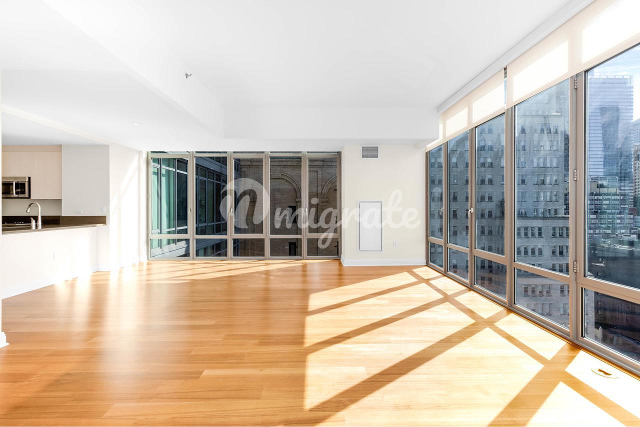 Полюбуйтесь этой красивой квартирой на высоком этаже в роскошном кондоминиуме Reade57 в престижном районе Трайбека, и вы определенно захотите сделать ее своей! Гламурная жемчужина с 3 спальнями и 2,5 ванными комнатами в настоящее время оборудована как 2 спальни, но при желании можно легко разместить дополнительную спальню или рабочую зону, не жертвуя жилой площадью.