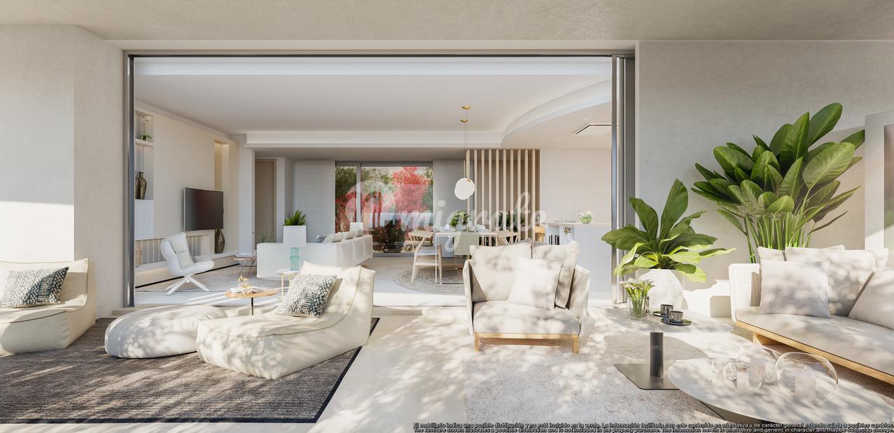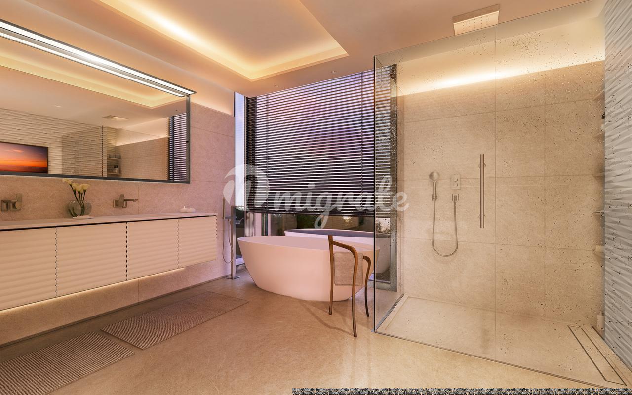 Большая гостиная и кухня с зоной для завтрака и большим центральным островом с выходом на переднюю и боковую террасы с прекрасным видом на море. Квартира состоит из практичной прачечной, гостевого туалета и гардеробной. Две спальни имеют общую ванную комнату, а главная ванная комната имеет собственную террасу. Все спальни имеют большие встроенные шкафы и много естественного света.