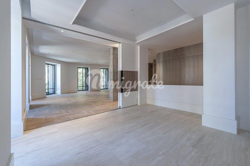 Невероятная недвижимость площадью 850 м² с пятью спальнями, семнадцатью балконами, большой террасой, двумя парковочными местами и кладовой в самом престижном районе Мадрида. Салустиано Олосага, культовая улица Мадрида, находится в нескольких минутах ходьбы от Пуэрта-де-Алькала, Пласа-де-ла-Индепенденсия и напротив посольства Франции. В этом изысканном доме в мадридском стиле продумана каждая деталь; расположен на втором этаже здания 11. Идеальный баланс между стариной и современностью был достигнут всемирно известной архитектурной и дизайнерской фирмой Garcia Mathies Group. Искусство и функциональность идеально сочетаются в этой культовой квартире. Идеально уложенные полы из швейцарского ореха «елочкой» с тремя различными вариантами отделки по всей квартире. Большинство стен покрыты деревом и мрамором, в некоторых местах сохранились оригинальные исторические кирпичи здания. Ванные комнаты отделаны красивым черно-белым итальянским гранитом и украшены прочными никелевыми аксессуарами Waterworks. В квартире есть летняя кухня, а также кухня для гурманов от Poliform. Имеет площадь около 850 м2 и имеет красивые софиты в виде облаков высотой 3,6 метра. Garcia Mathies Group создала идеальный баланс: ощущение безмятежности и современности против истории, света и видов на город во всем здании.