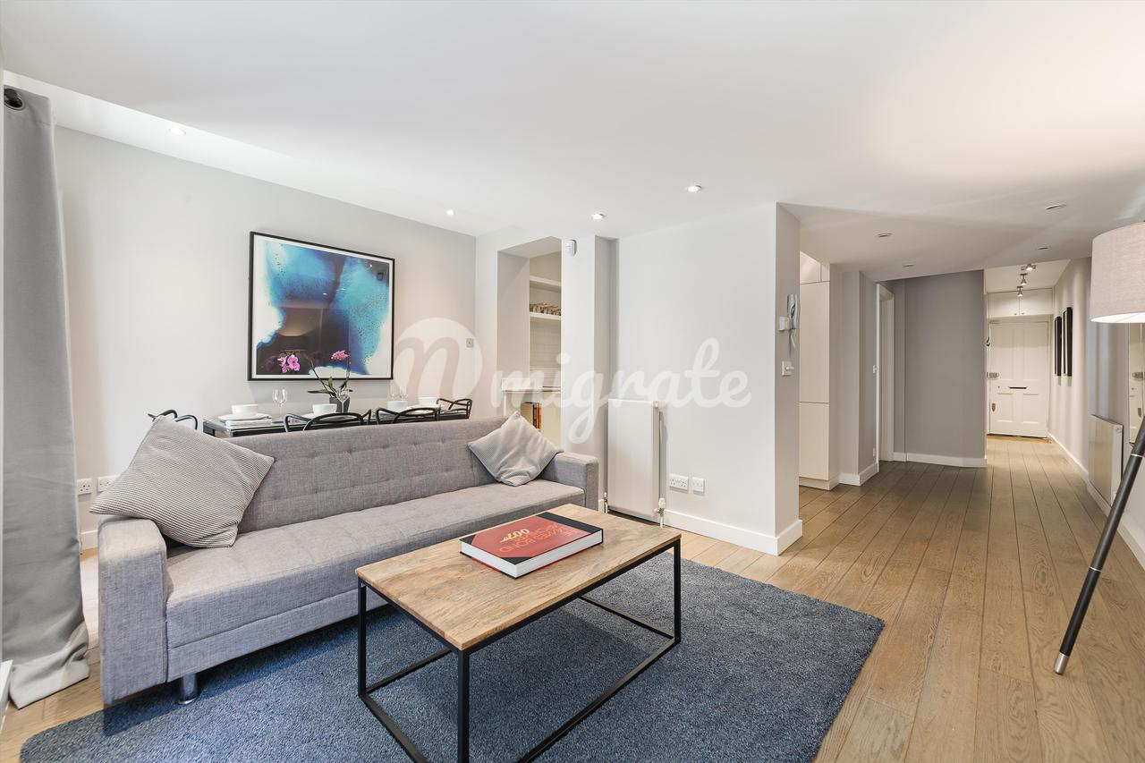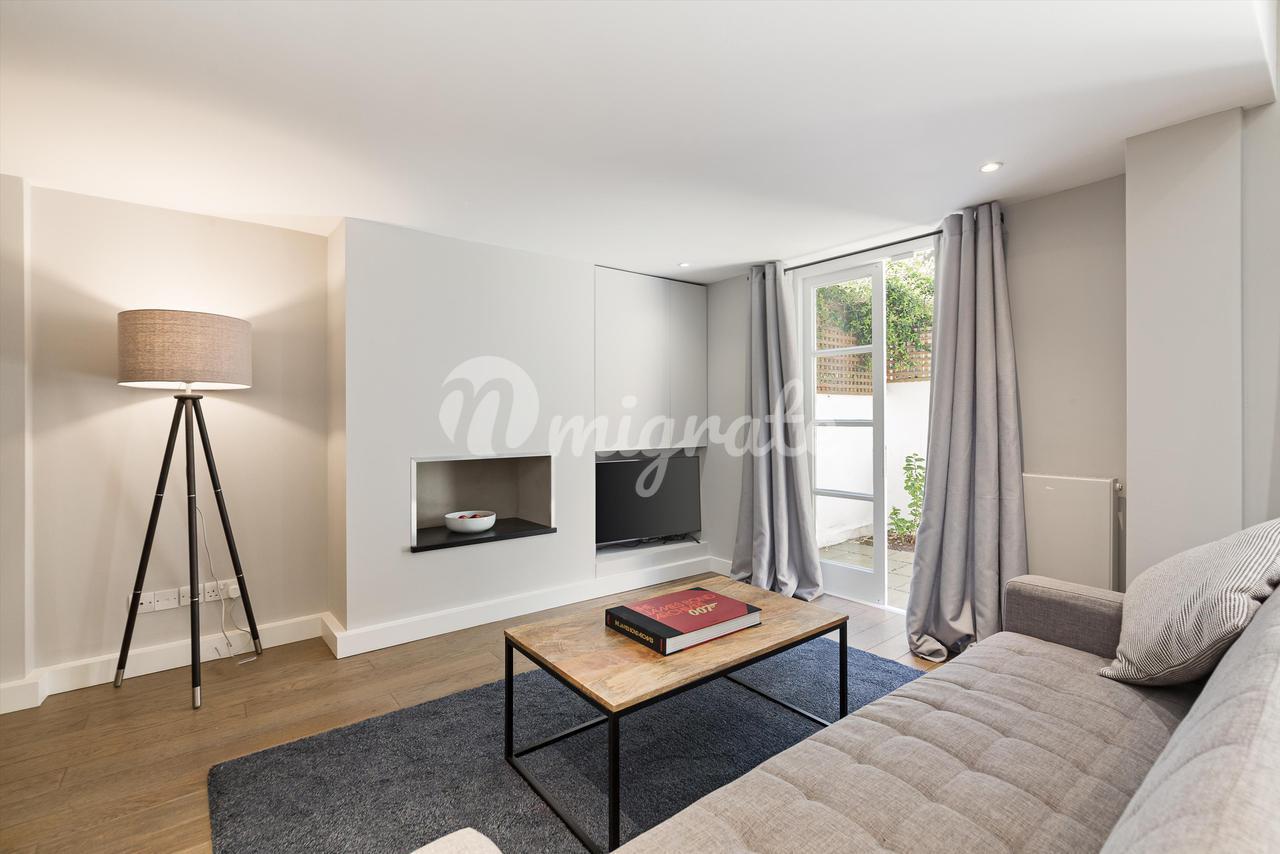 Недавно отремонтированная двухкомнатная квартира с частным садом, идеально расположенная недалеко от Кингс-роуд в самом центре Челси.