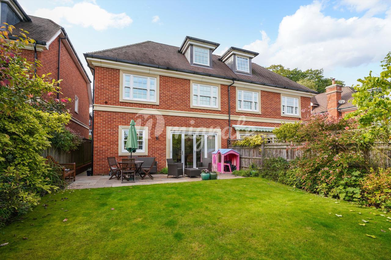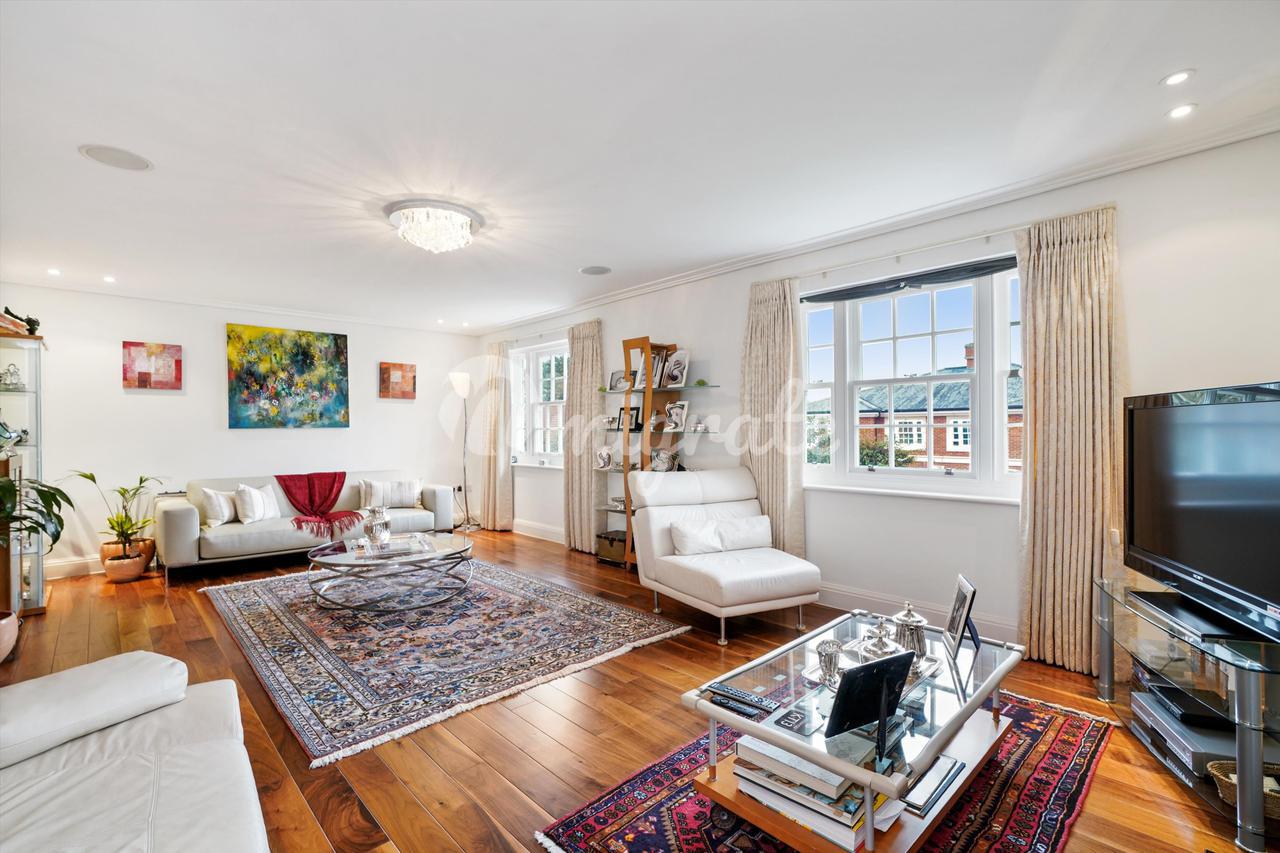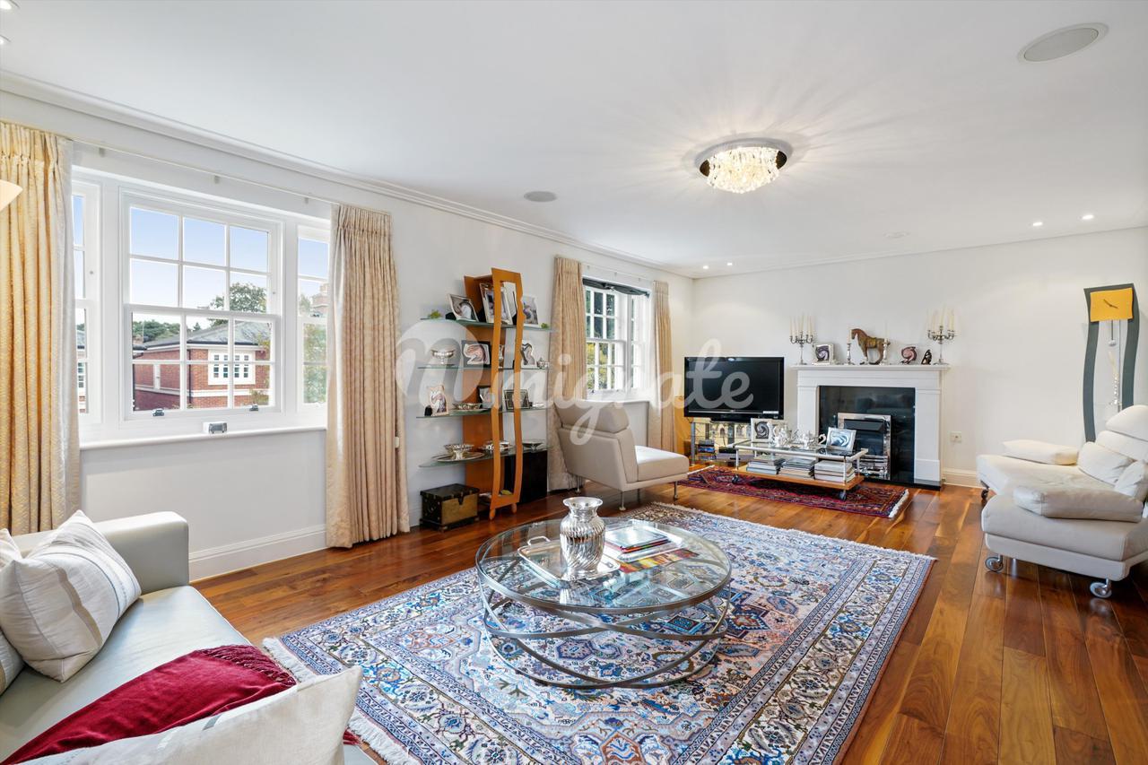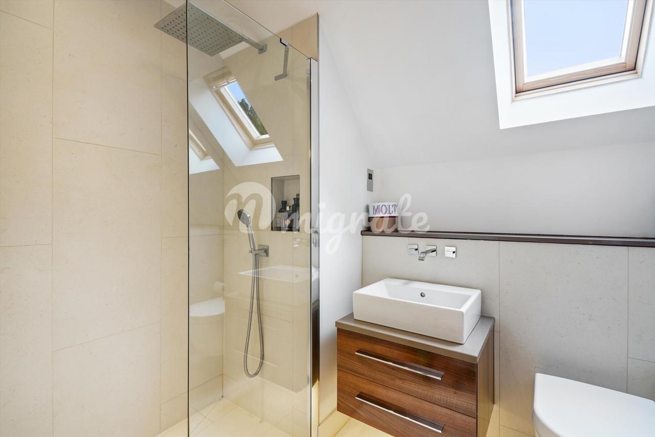 На нижнем этаже также есть большое подсобное помещение, кабинет, гостевая гардеробная и дверь в встроенный гараж. На первом этаже находится формальная гостиная с видом на сад. Основная спальня также расположена на первом этаже вместе со спальней и ванной комнатой. На втором этаже расположены две спальни с ванными комнатами, обе с гардеробными. В доме высокие потолки, встроенная звуковая система и полы с подогревом на первом и втором этажах.