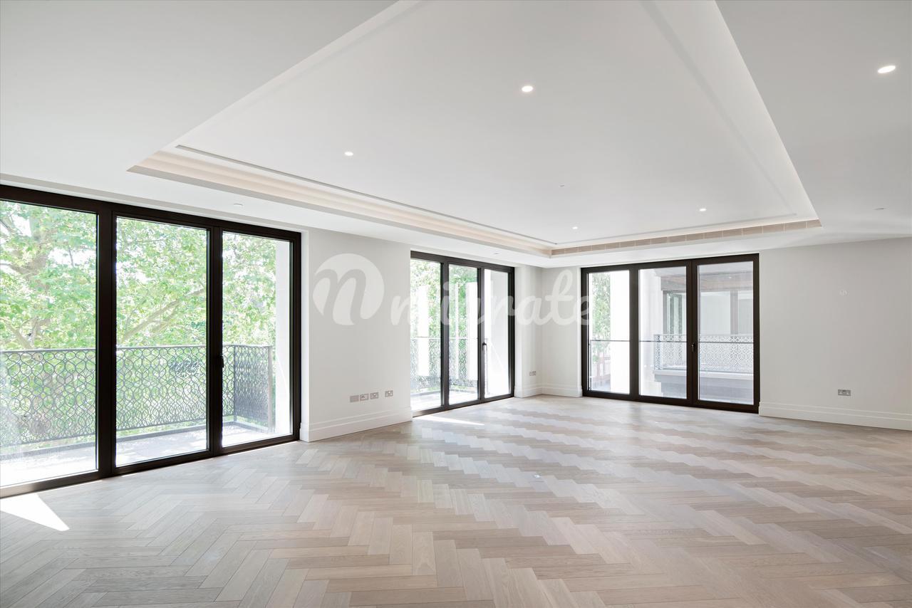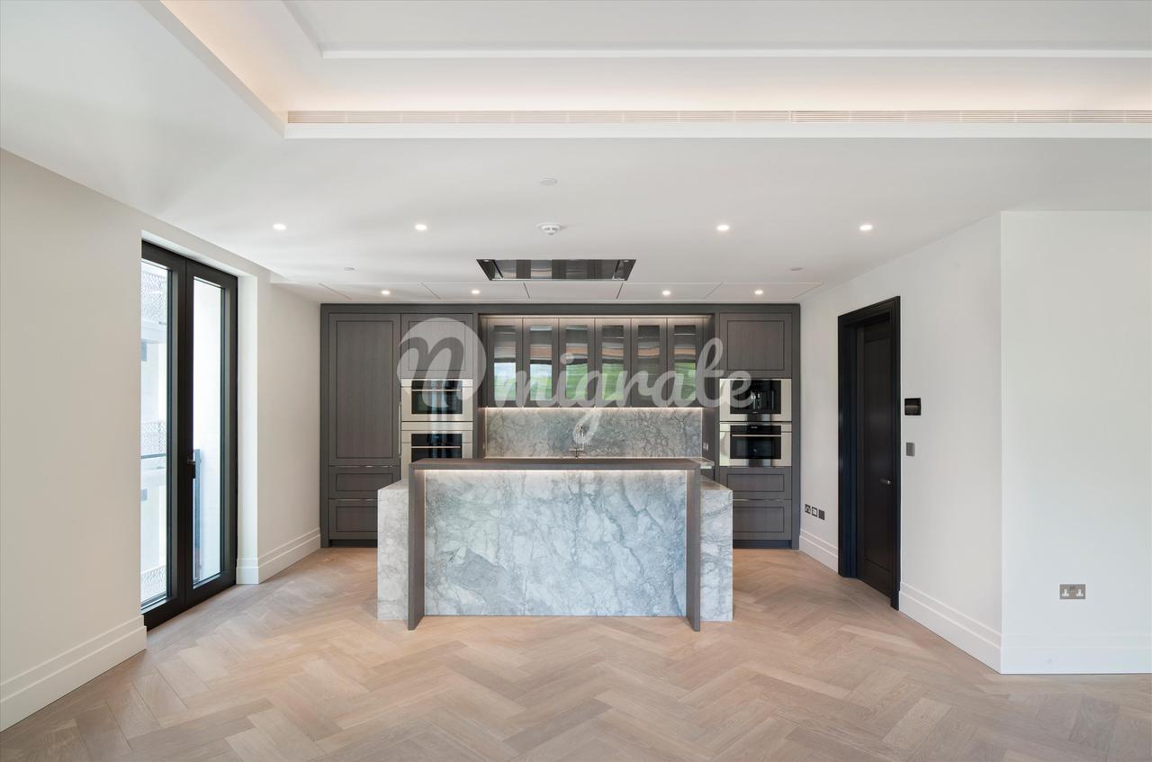 Эта красивая резиденция с тремя спальнями, расположенная на третьем этаже по адресу Уистлер-сквер, 8, предлагает элегантные жилые помещения по бокам, где окна от пола до потолка открывают прекрасные виды на Уистлер-сквер и Борн-Уок, два из семи новых садовых скверов в казармах Челси и Королевский госпиталь Челси. Эти уникальные апартаменты, спроектированные в большом масштабе для современной жизни, включают формальные/семейные помещения и спальни, дополненные отдельными балконами и кабинетом. Резиденции в Chelsea Barracks являются воплощением роскоши; это выставка высочайшего мастерства, классический дизайн с акцентом на современные детали и интерьеры, вдохновленные богатым наследием Лондона. Резиденция 26 расположена на Уистлер-сквер, одной из семи площадей в казармах Челси, каждая из которых имеет свой неповторимый характер. Изящные деревья тянутся вдоль площади, их зеленая листва отражается в современном водном объекте, сделанном из британского сланца, с тонкой рябью, напоминающей затерянные реки Лондона.
