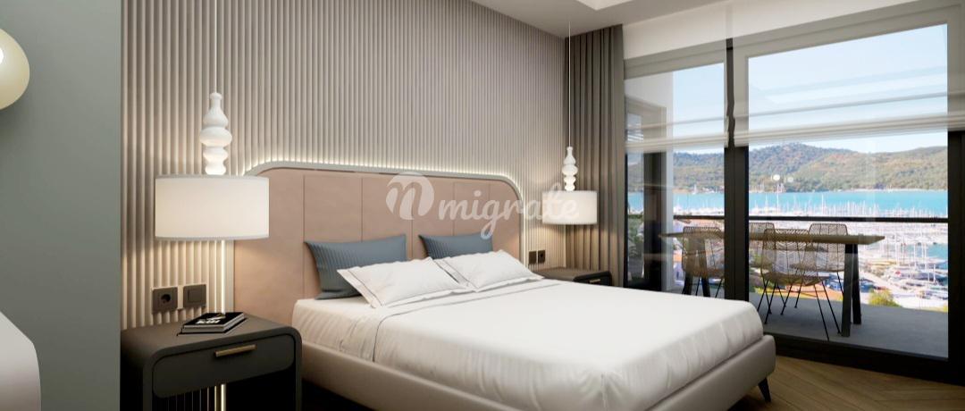 Резиденции расположены в самом престижном районе Фетхие. Проект находится в 150 метрах от моря и главного променада с беговыми, велосипедными дорожками, красивыми зелёными парками. Из резиденций отрывается вид на залив Фетхие и панорамный вид на море, рядом находится сосновый лес. Марина и яхт-клуб Фетхие находятся всего в 150 метрах от проекта. Набережная Фетхие, все магазины, кафе, рестораны и центр Фетхие находятся в 250 метрах от комплекса. На территории: крытая парковка и зарядная станция для электромобилей, круглосуточная охрана, услуги стойки регистрации и консьержа, открытый и крытый бассейны, детский бассейн, тренажерный зал, сауна, бар у бассейна, тёплые полы, система кондиционирования.