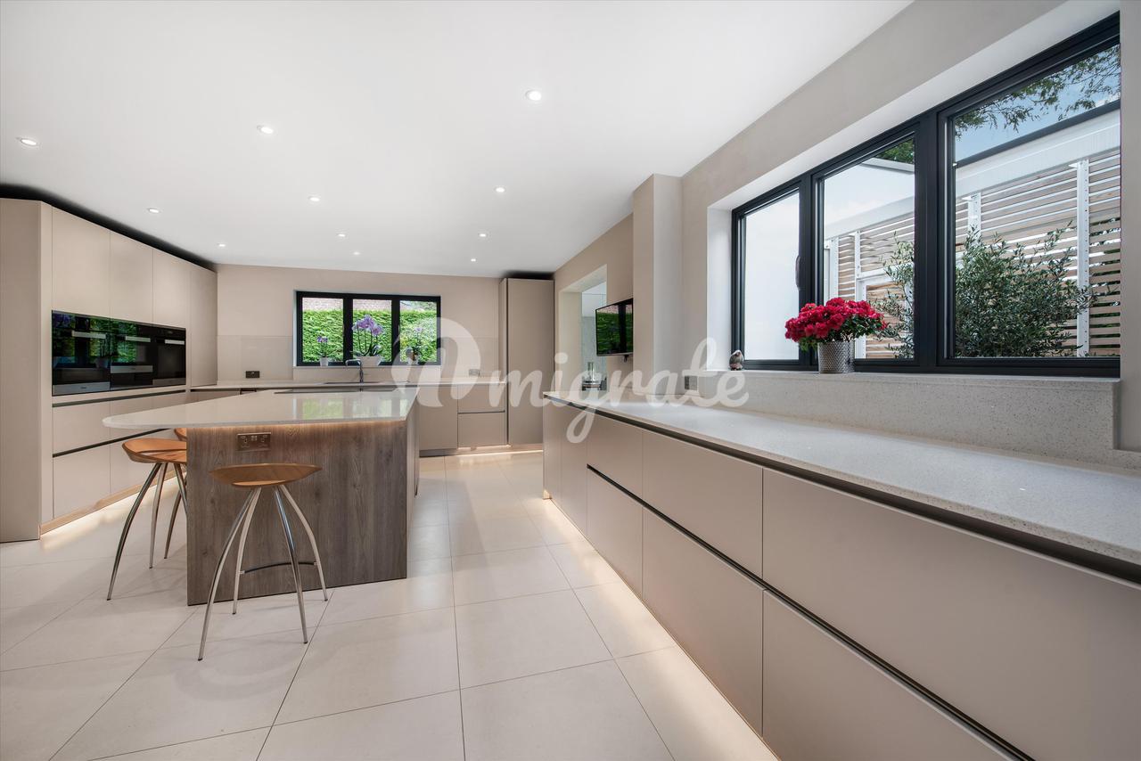Светлая и гостеприимная прихожая дает доступ ко всем основным комнатам для приемов, включая гостиную, выходящую на задние сады, и потрясающую кухню / комнату для завтрака с центральным островом и широким выбором настенных и напольных модулей. Столовая, которая ведет из кухни, имеет приятный вид и двери во внутренний дворик спереди.