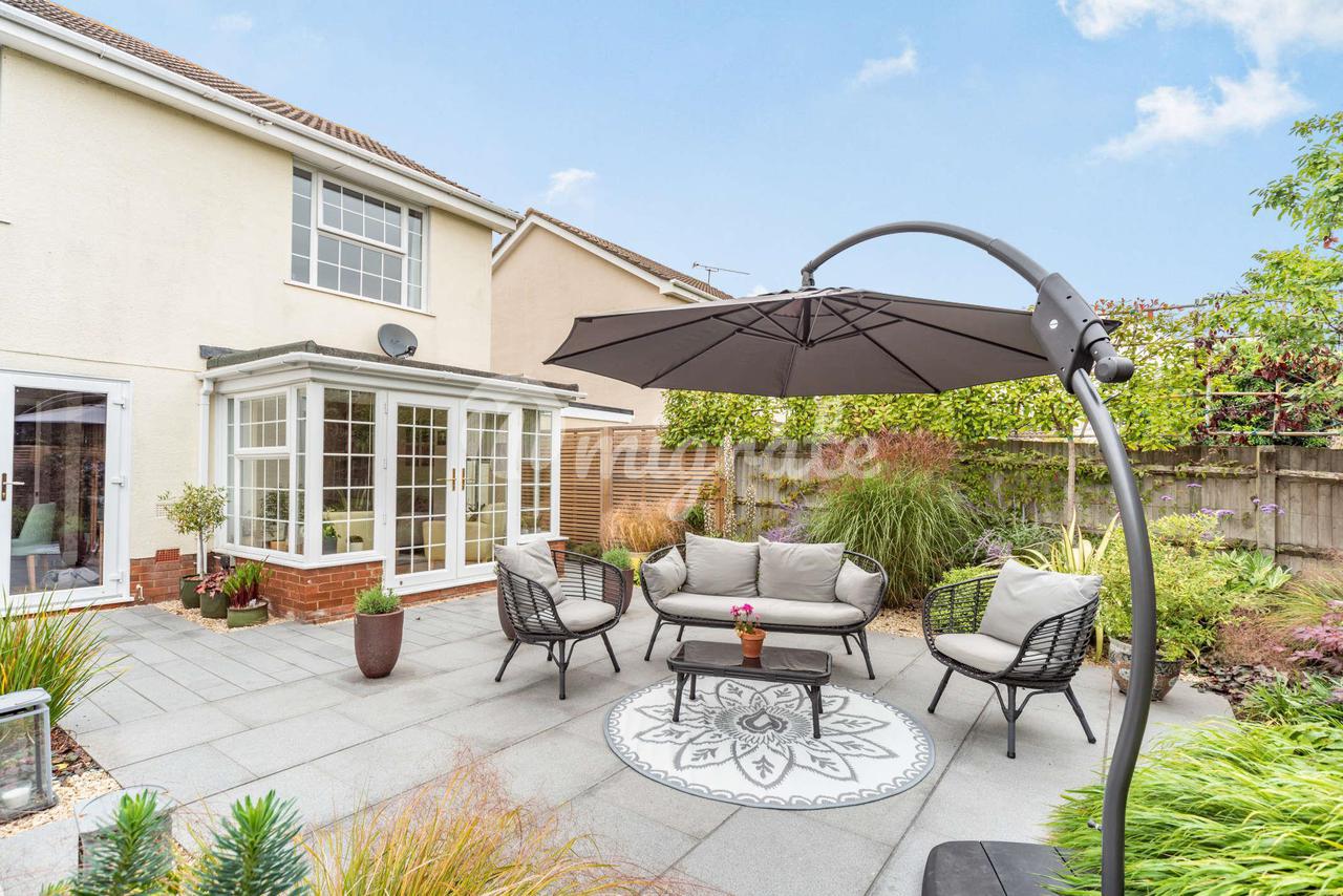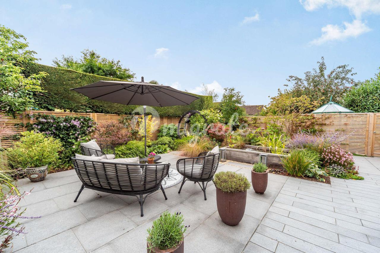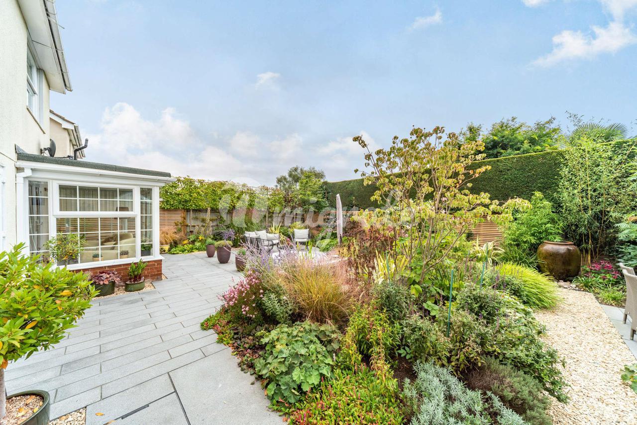 Перед домом асфальтированная дорога с парковкой на три-четыре машины. В саду есть красивые клумбы, заполненные смесью взрослых кустарников и растений, дорожка, ведущая к главному входу, окаймлена газонами. Задний сад был красиво озеленен местным дизайнером, создав спокойное пространство с восточной тематикой. С одной стороны есть просторная мощеная площадка с круглой беседкой и прудом, ведущая к обеденной зоне с водным сооружением. Сад окаймлен решетчатым забором из твердой древесины и сплетенными деревьями, что придает саду ощущение уединения. Подсобное помещение ограждено забором, в нем есть теплица, мусорное ведро и выход в подсобное помещение, в котором есть рабочая поверхность, раковина со стиральной машиной и сушилкой внизу, в нем также находится котел Megaflow и есть доступ к кладовой. К обеим сторонам собственности ворота и путь к передней части собственности.