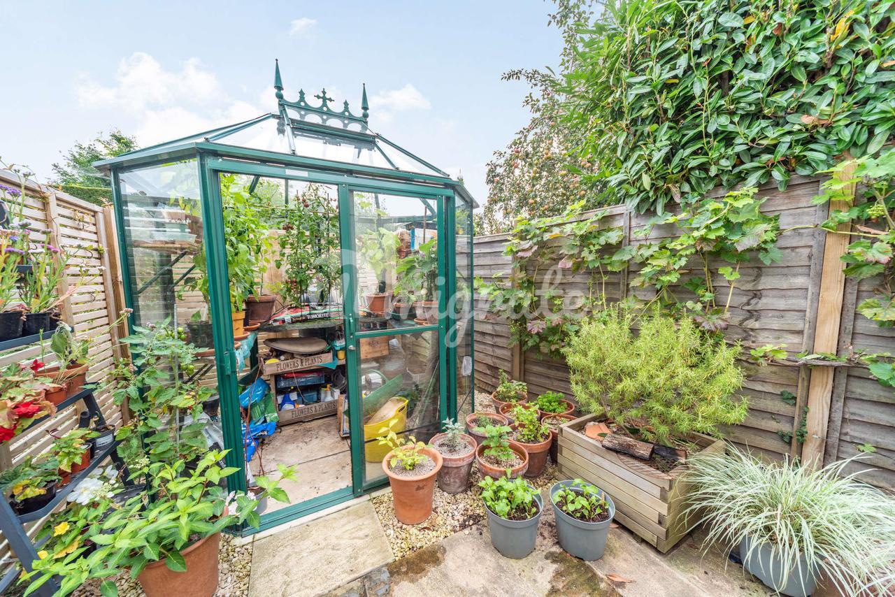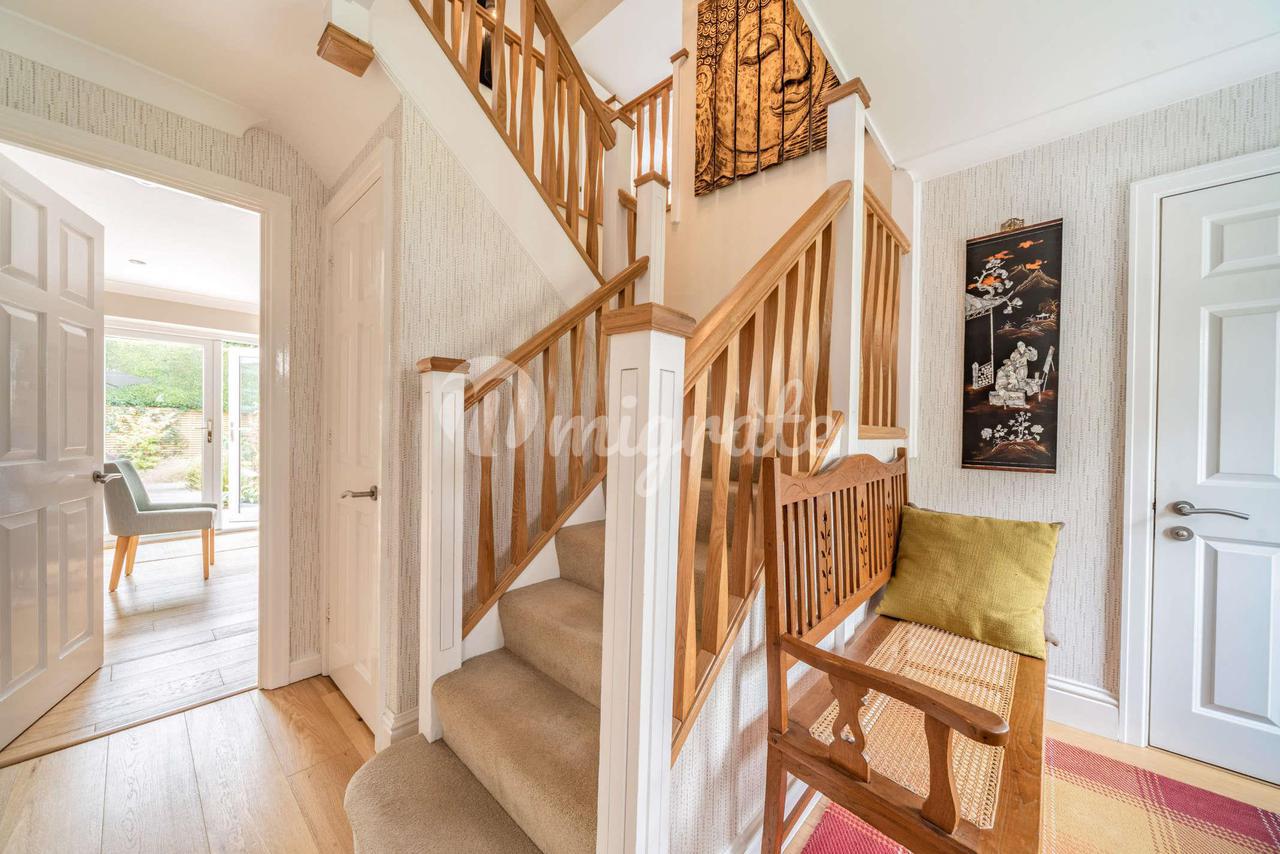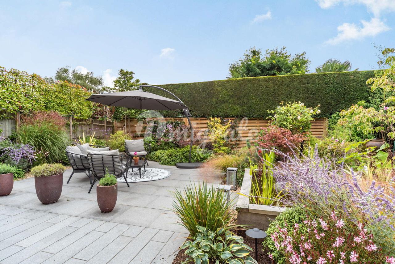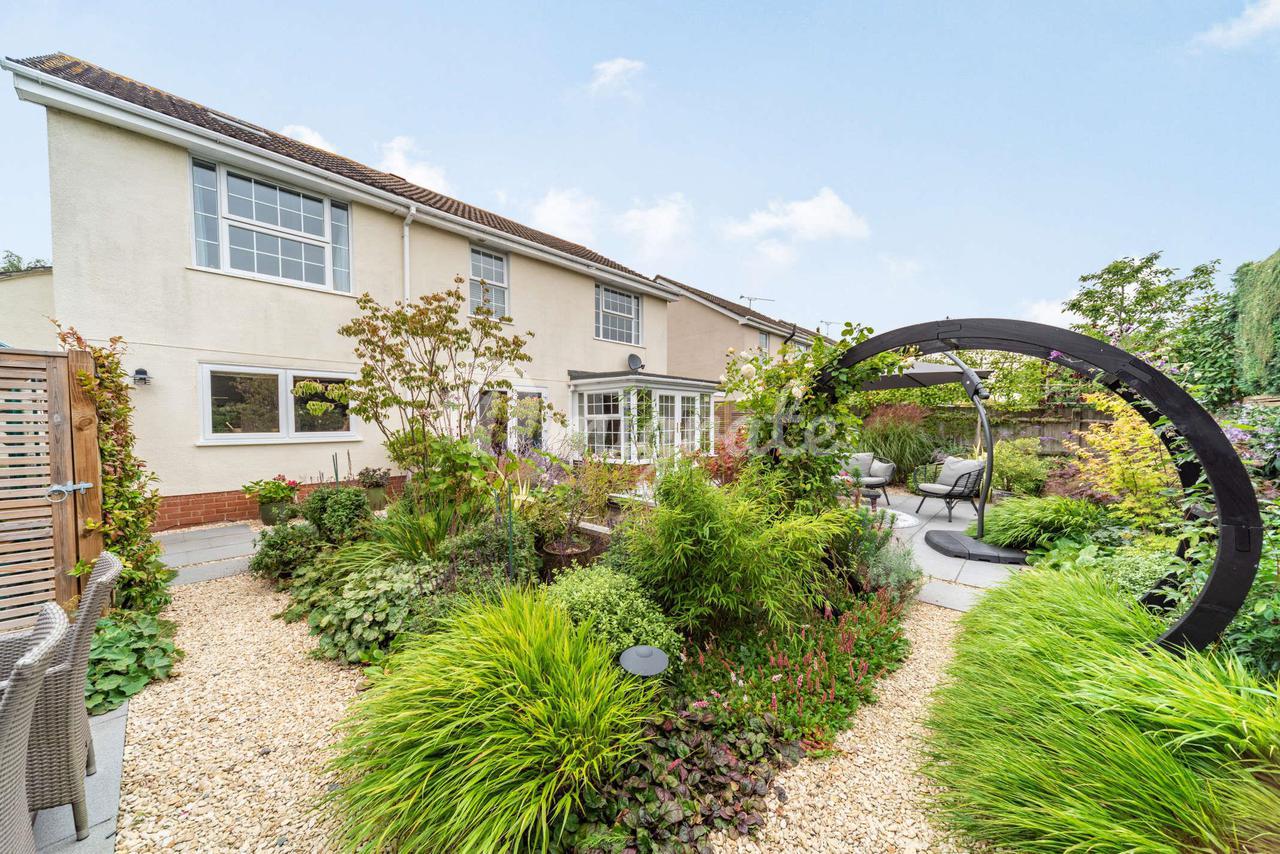 Перед домом асфальтированная дорога с парковкой на три-четыре машины. В саду есть красивые клумбы, заполненные смесью взрослых кустарников и растений, дорожка, ведущая к главному входу, окаймлена газонами. Задний сад был красиво озеленен местным дизайнером, создав спокойное пространство с восточной тематикой. С одной стороны есть просторная мощеная площадка с круглой беседкой и прудом, ведущая к обеденной зоне с водным сооружением. Сад окаймлен решетчатым забором из твердой древесины и сплетенными деревьями, что придает саду ощущение уединения. Подсобное помещение ограждено забором, в нем есть теплица, мусорное ведро и выход в подсобное помещение, в котором есть рабочая поверхность, раковина со стиральной машиной и сушилкой внизу, в нем также находится котел Megaflow и есть доступ к кладовой. К обеим сторонам собственности ворота и путь к передней части собственности.