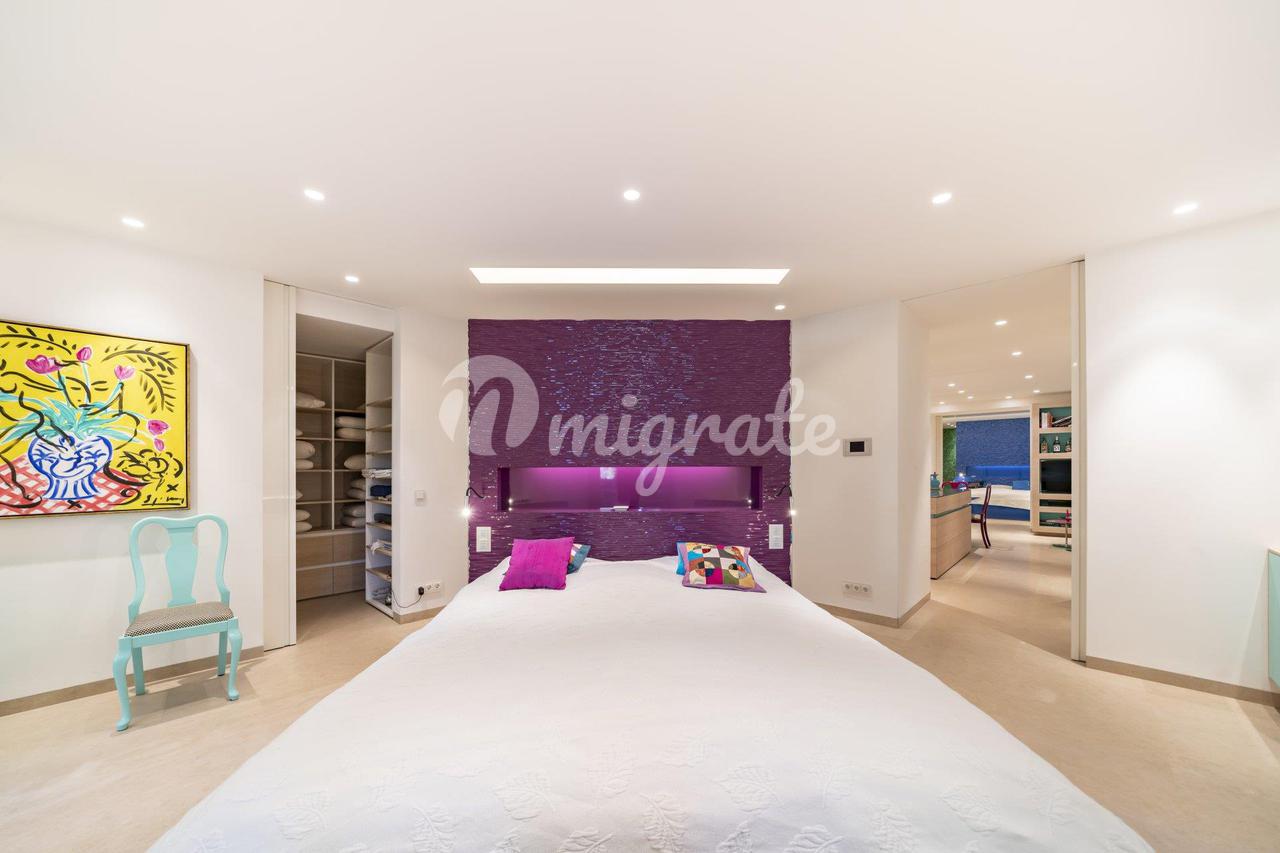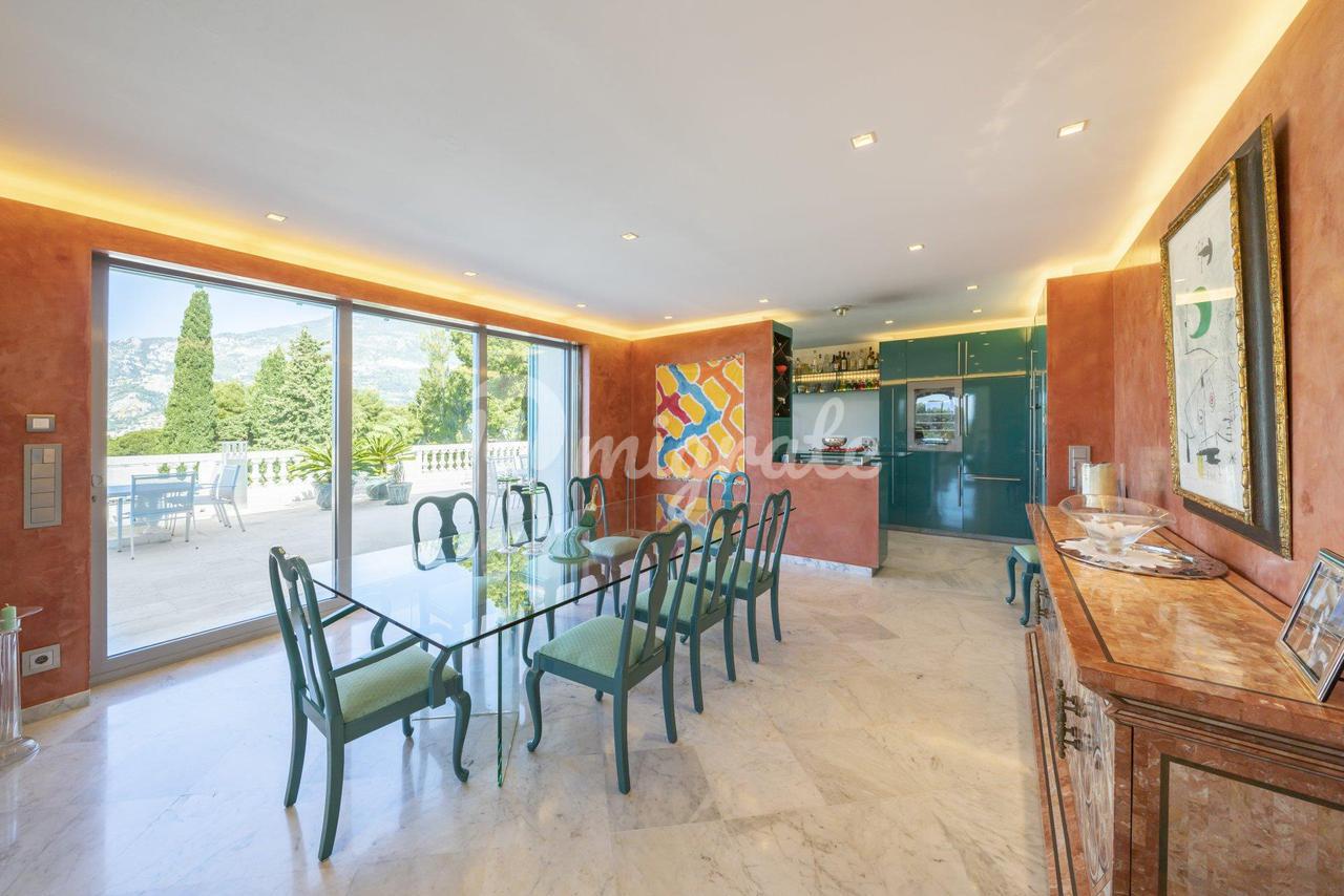 Расположенный в самом центре известного частного владения, в потрясающем здании с каменным фасадом 1897 года. Окруженный ландшафтными садами, предлагающими полную конфиденциальность. Пентхаус площадью 150 кв.м. с двумя спальнями, двумя ванными комнатами, гардеробной, отдельной кухней, элегантной гостиной и столовой. Это ведет на прекрасную террасу на крыше площадью 150 кв. м, с которой открывается захватывающий вид на сады, Средиземное море и Монако. Также включает в себя студию для гостей/персонала, расположенную на первом этаже, частную парковку и подвал. Ровный сад площадью 5000 квадратных метров с бассейном, пул-хаусом и сауной.