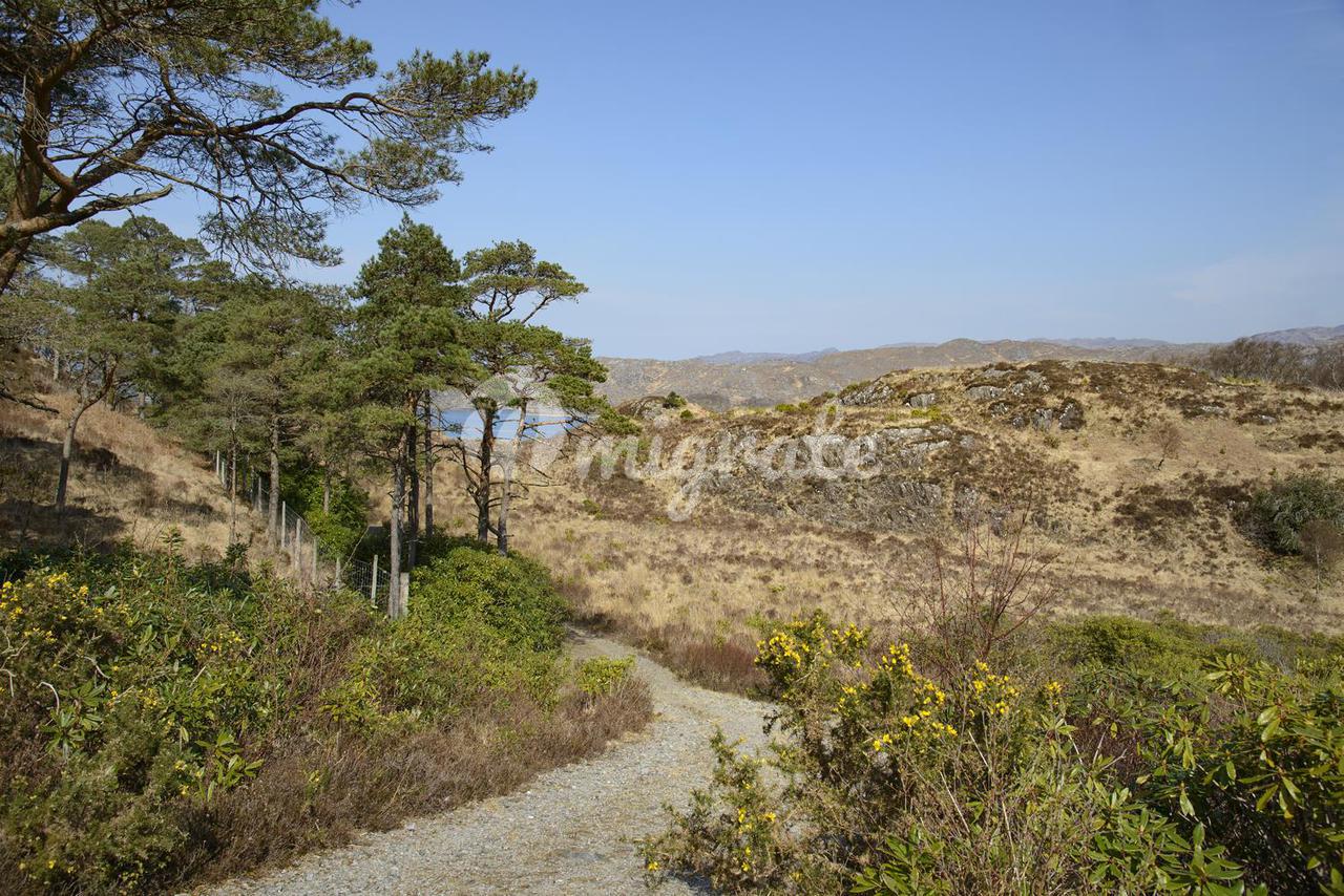 Территория простирается в общей сложности на 18,44 акра и состоит из нескольких скалистых вересковых участков над домом вместе с грубым пастбищем, соснами, древним дубовым лесом и скалистым берегом, простирающимся примерно на 715 метров.