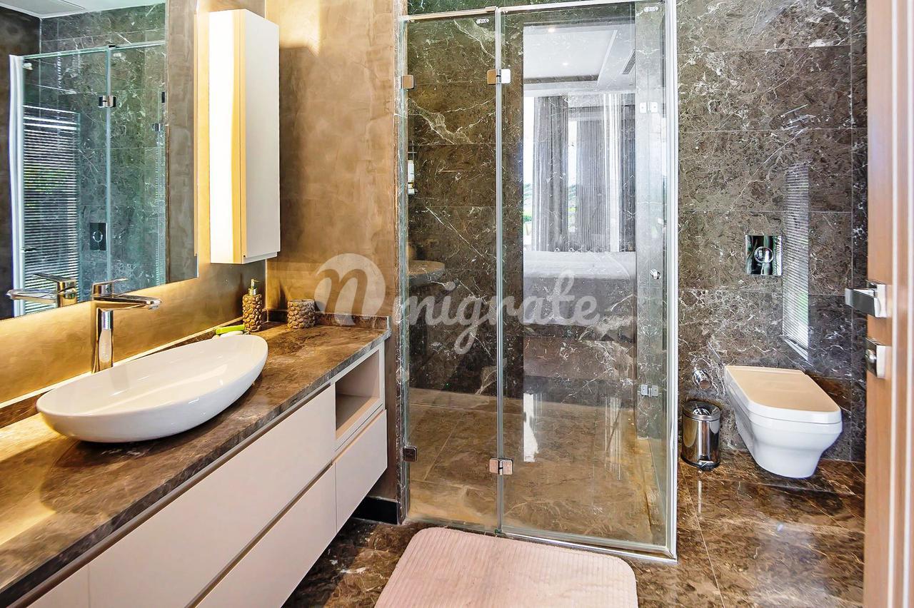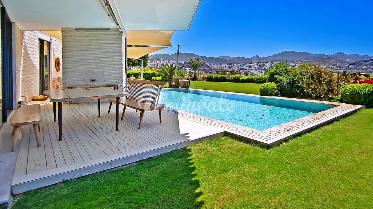 Продается 5-звездочная роскошная двухэтажная вилла на берегу моря в Ялыкаваке. В нескольких шагах от живописного Эгейского моря, эта вилла занимает одно из лучших мест в этом популярном закрытом комплексе с видом на море в Ялыкаваке. Вилла может похвастаться системой «умный дом», позволяющий контролировать все параметры дома с помощью смартфона. Вилла состоит из четырех двухместных спален с ванными комнатами и открытым видом на море. На вилле есть отдельная полностью оборудованная комната для прислуги (пристройка – 30 м2) и закрытый гараж на две машины, зарядное устройство, на участке также есть круглосуточная система видеонаблюдения с камерами. Вилла: 451 м2 частный сад, 40 м2 частный бассейн, 4 спальни, 1 гостиная, 4 ванные комнаты. Инфраструктура: 19 км до центра Бодрума и пристани для яхт Милта, 8 км до пристани Ялыкавак, 50 км до аэропорта Бодрум.