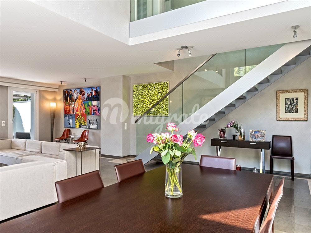 Роскошный современный дюплекс площадью около 245 кв. м находится в охраняемом доме в районе Шампель, недалеко от центра Женевы. Построенный в 2008 году с использованием лучших материалов, он отличается просторными и хорошо освещенными, благодаря большим окнам, комнатами.