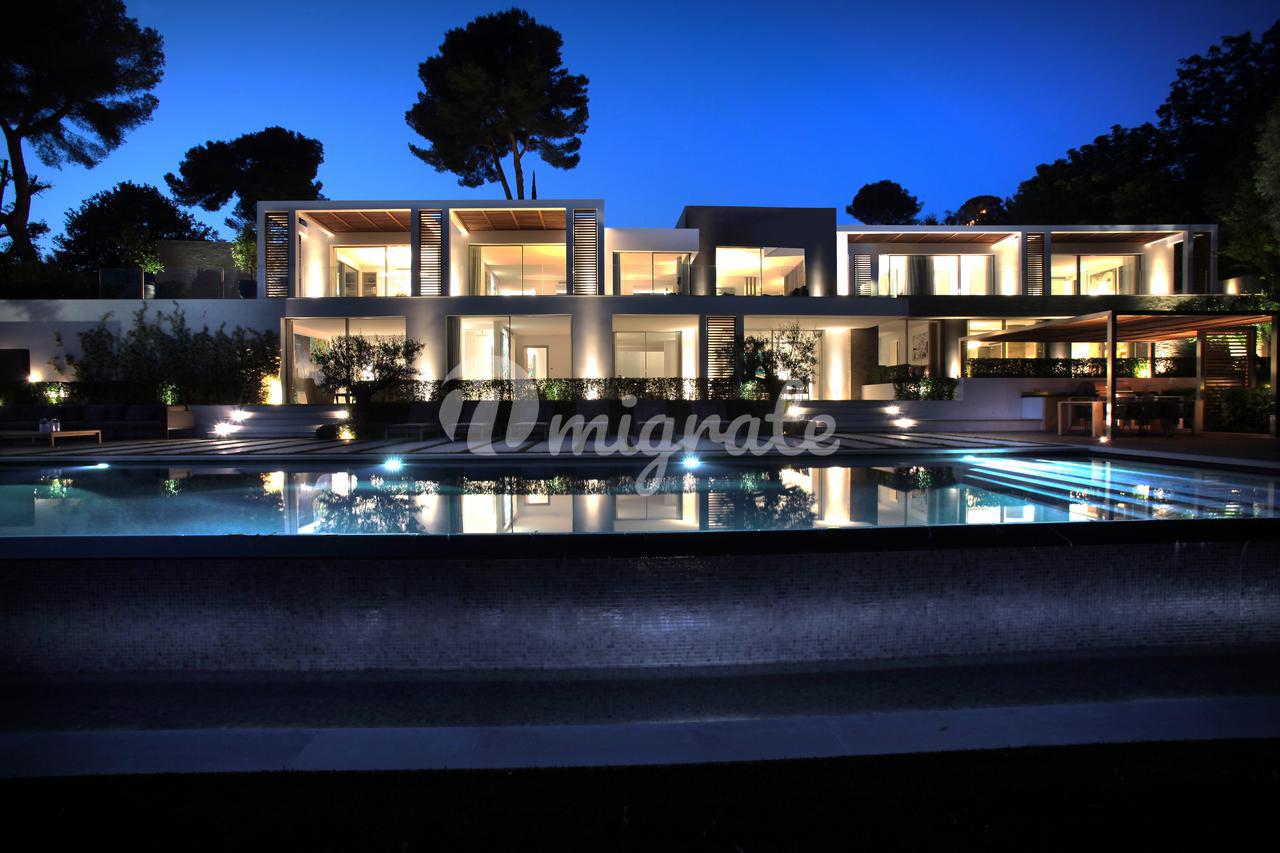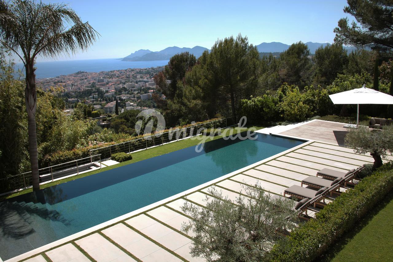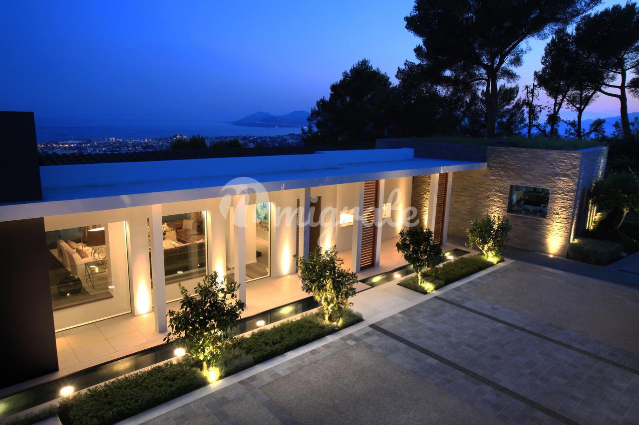 Роскошная современная вилла расположена на самой вершине Канн Калифорни в закрытом охраняемом домене. С виллы открываются захватывающие панорамные виды на Средиземное море и Канны.